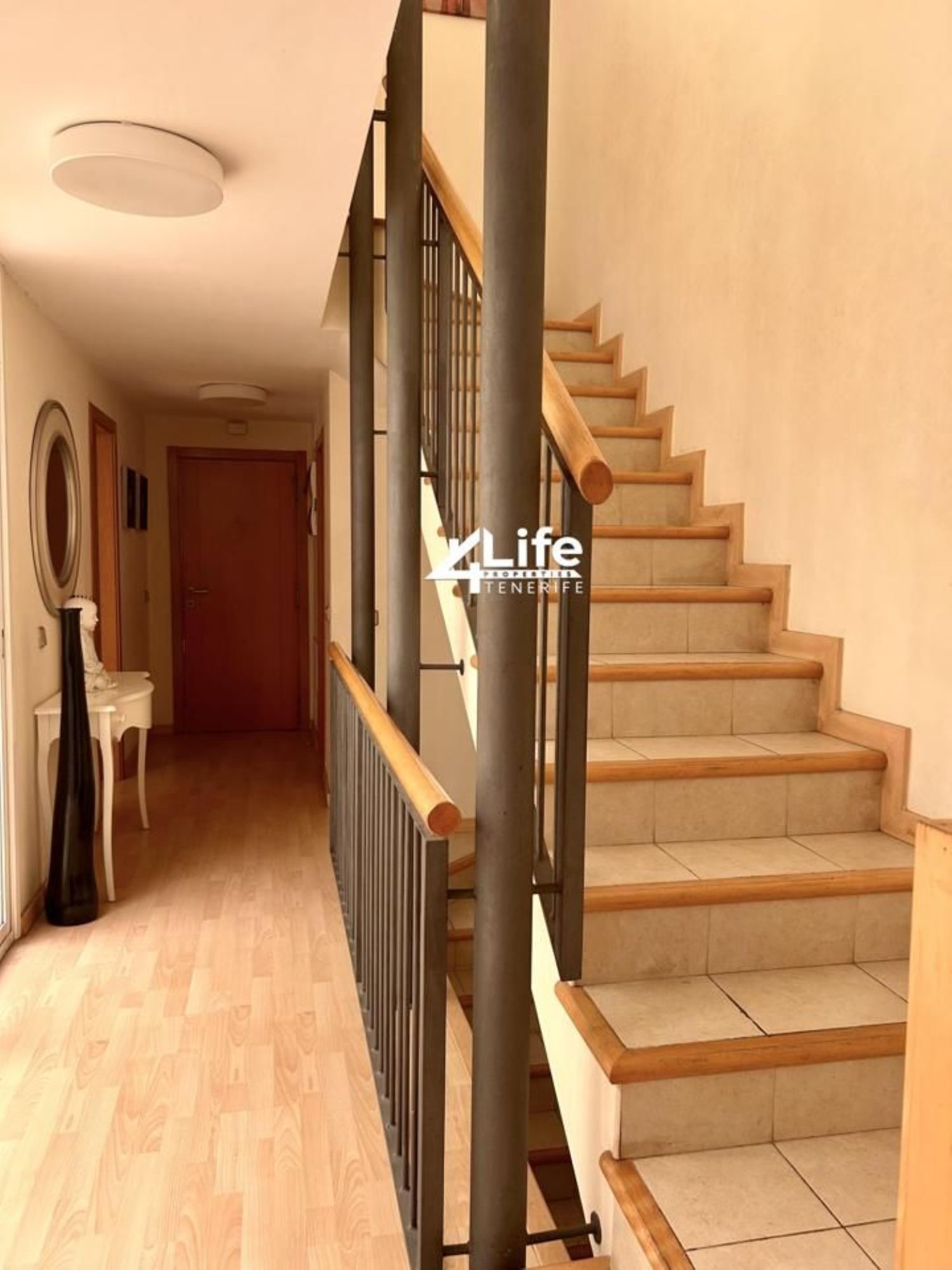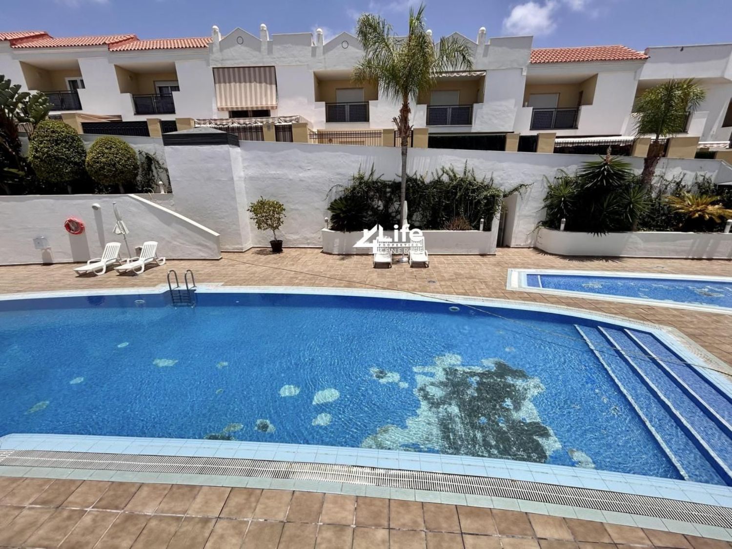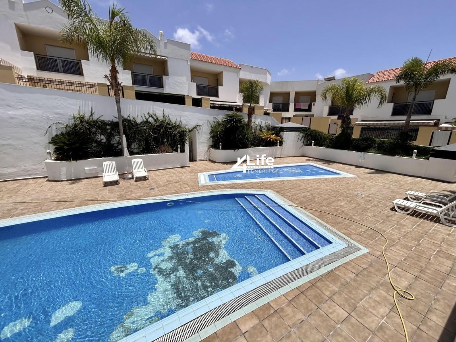 Preciosa casa adosada ubicada en el tranquilo complejo de Oasis de Fañabe con piscina en El Madroñal, Costa Adeje. Propiedad climatizada de 284m2 en 2 niveles + sótano. Posibilidad de crear un 4º dormitorio en el sótano. A poca distancia del centro comercial X-Sur, farmacia, colegio internacional, etc. También puedes caminar hasta la playa en 15 minutos a través de un puente peatonal.nivel -1/sótano:Amplio garaje para dos coches.trastero o futuro dormitoriobañonivel 0:terraza en la parte delantera de la casacocina equipada de planta abiertadespensa contigua a la cocinacomedor con luz naturalsalón con acceso a terrazaTerraza en la parte trasera de la casa con acceso directo a la piscina.Nivel 1:1 suite para padres con baño y balcón2 dormitorios (1 con balcón)1 bañoPRECIO: 498.000 €Gastos de comunidad: 91€/mesIBI: 357€/añoPara obtener más información sobre esta u otras propiedades, ¡contáctame!justina+34 / 643 / 403 / 309Propiedades de 4Life.