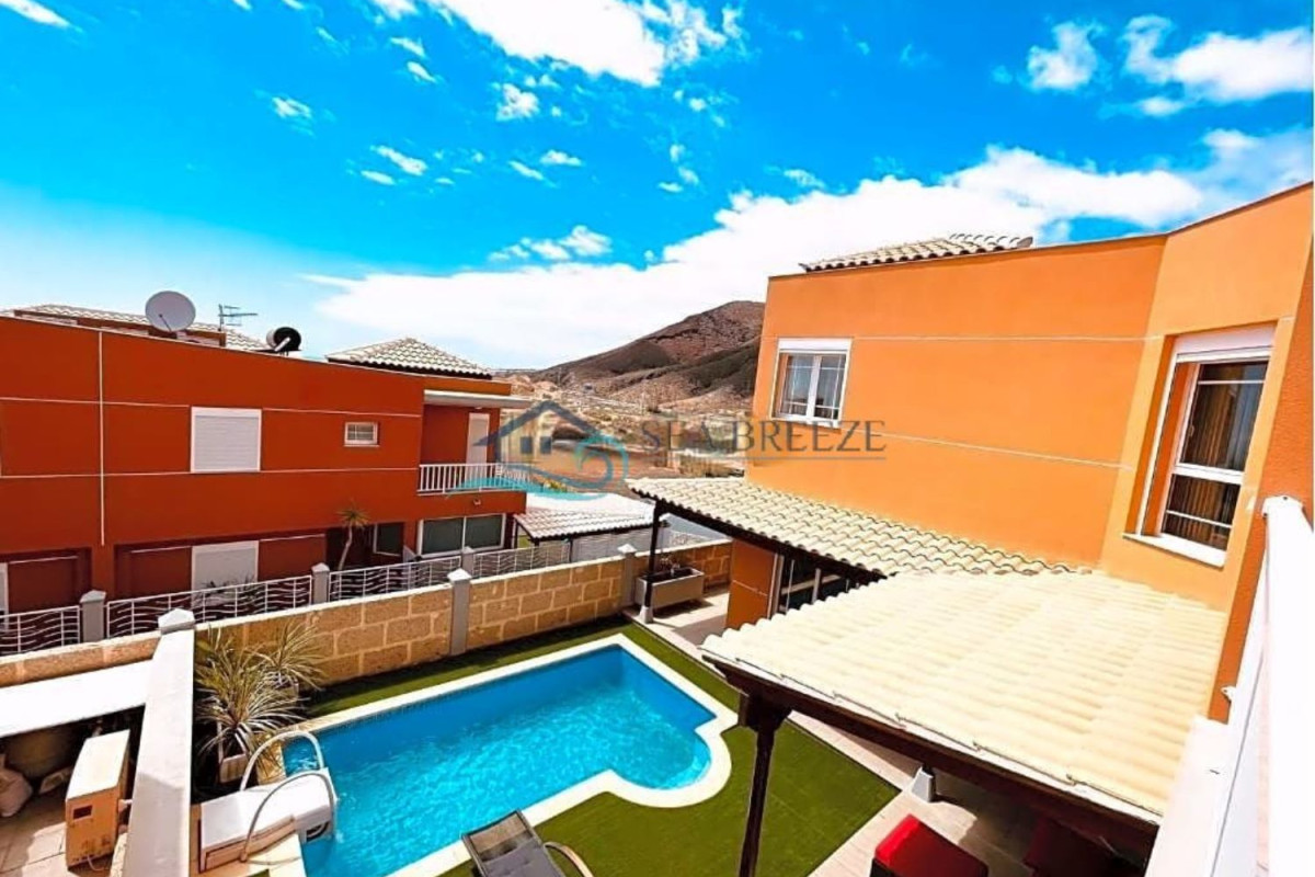 Venta casa en Los Cristianos de 4 dormitorios, 2 plantas, salón, cocina independiente, 3 baños, terraza en primera y segunda planta, piscina, trastero debajo de la casa 125 m2 con vistas al...