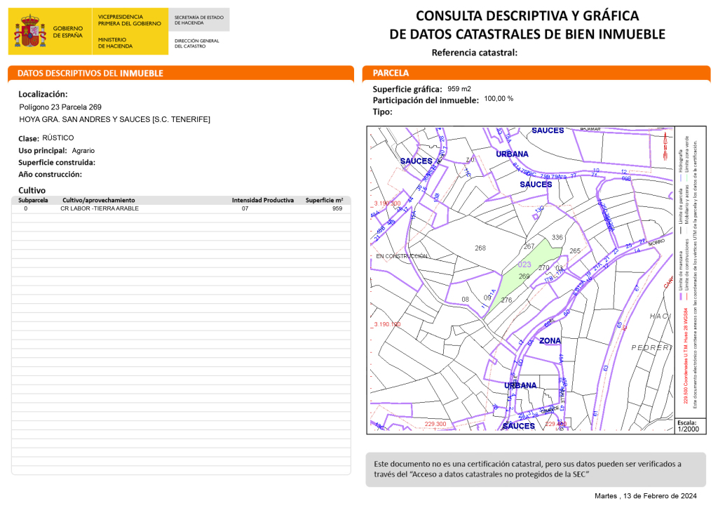 Market price statistics for Rustic land For sell in San Andres Y Sauces in Santa Cruz de Tenerife