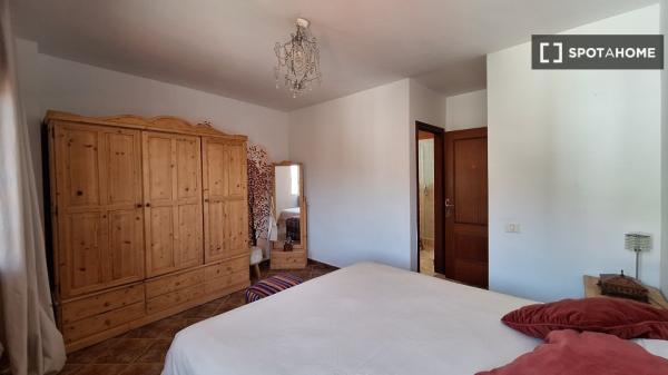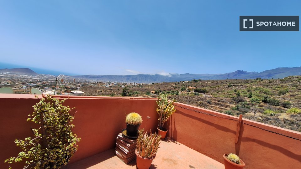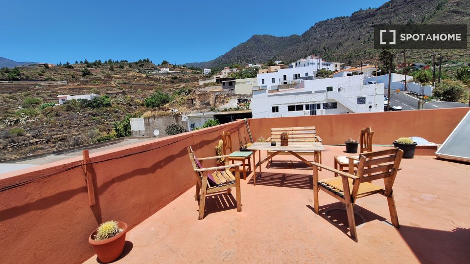 Rooms for rent in a furnished 4-bedroom, 3-storey house on Pl. De Araya. The property includes dryer, roof terrace, private patio, and bbq.