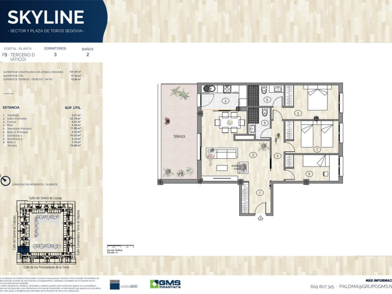 GMS Inmobiliaria, presenta en exclusiva una nueva promoción de viviendas: Skyline Segovia. 50% vendido.Una oportunidad tanto para vivir como para invertir, en la zona con mayor proyección de Segovia y a tan sólo 5 minutos de la estación de Ave Segovia - Guiomar.Skyline Segovia es un conjunto residencial formado por 92 viviendas de 1, 2, 3 y 4 dormitorios, todas ellas con amplias terrazas. Las viviendas incluyen trastero y plaza de garaje en el precio, pudiendo comprar una segunda plaza de garaje por 19.000€ + IVA.Skyline, es un proyecto diferente, por su diseño contemporáneo en el que se ha cuidado el más mínimo detalle y con las más altas calidades.En una ubicación privilegiada, la promoción tiene unas amplias zonas comunes (más de 2.000m²) ofreciendo todo lo que necesitas para el disfrute con los tuyos: piscina, gimnasio, club social, pista de pádel, zonas ajardinadas y área de juegos infantiles.Teniendo la máxima calificación energética, la promoción cuenta con un moderno y eficiente sistema de climatización mediante aerotermia con suelo radiante (frío/calor).Rodeada de todos los servicios: biblioteca, centro cultural, colegio, instituto, ambulatorio, supermercado, farmacia… es una zona única por su proximidad al centro de la ciudad y a la salida hacia Madrid.Licencia de obras solicitada. Entregas a cuenta avaladas.Con la garantía de Construmad. Promotora y constructora.Ponte en contacto con nosotros y te informaremos sin compromiso de este magnífico proyecto residencial donde crear tu nuevo hogar.*Todas las imágenes infográficas carecen de carácter contractual y podrán variar en función de las exigencias técnicas.