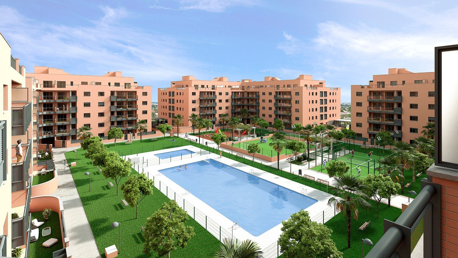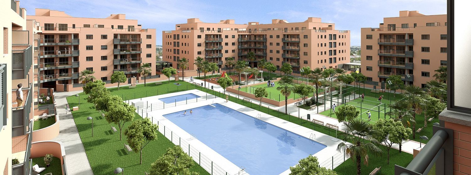 Discover a new phase for sale in our residential community, perfectly located in a thriving area of Montequinto in Sevilla. This prime location is just 200 meters from the “Europa” metro station. The development covers more than 4,500 m² of communal spaces, including swimming pools, lush green areas, padel courts, children's playgrounds, a gym, and a multipurpose room. By removing the emergency vehicle lane, we've expanded the green zones and leisure areas, offering additional multi-use spaces, fitness facilities, and a communal lounge on the ground floors of some buildings.