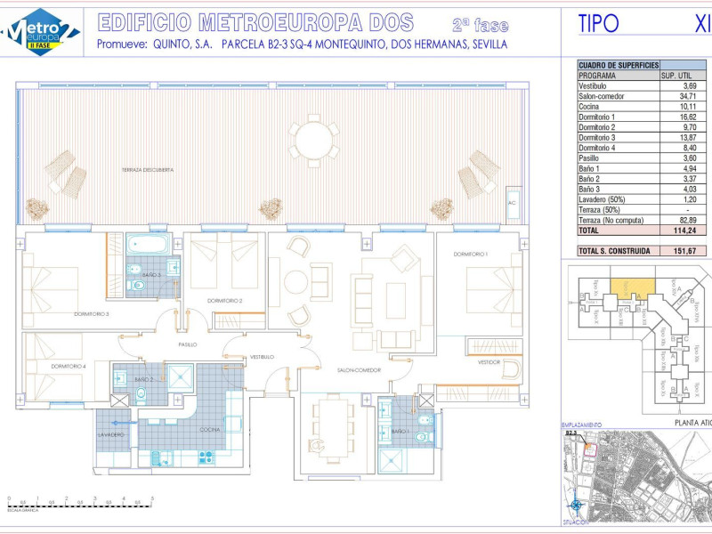 ¡ULTIMAS VIVIENDAS DISPONIBLES! En el primer edificio de la segunda fase de nuestro residencial Metroeuropa ubicado en la Avda. de Montequinto, en la barriada nazarena del mismo nombre, a 200 m de la parada “Europa” del Metro de Sevilla, y con más de 6.000 m2 de zonas comunes, con piscinas, zonas verdes, padel, juegos infantiles, gimnasio, y salón comunitario.En esta segunda fase hemos ampliado las zonas verdes y de esparcimiento al eliminar la calle de vehículos de emergencia, y dotado de unos espacios multiusos, gimnasio y salón comunitario, ubicados en las plantas baja de alguno de los edificios del residencial.En METROEUROPA DOS - 1ª FASE encontrará espaciosas y luminosas viviendas de 2 y 4 dormitorios, dotadas con amplias terrazas, garaje y trastero, superficies desde 95 m2 hasta 187 m2; e impresionantes áticos de 2 con magníficas terrazas de 28 m2. Viviendas eficientes con Calificación Energética A, con las que acceder a bonificaciones en el IBI, así como a una hipoteca verde, con los beneficios económicos que ello supone.Su ubicación a 200 m de la parada del metro, en la zona más consolidada de Montequinto, con todos los servicios a su alrededor, como supermercados Mercadona, Lidl; Dia, centro comercial Cinequinto, centro de salud, mercado de abastos, y todo tipo de comercios, su cercanía a las universidades Pablo de Olavide, y Loyola, su espaciosa zona común, y su localización frente a los parques de "Las Cuatro Estaciones" de 21.000 m2, y de "Los Pinos" con 80.000 m2, hacen de los “EDIFICIOS METROEUROPA”, un lugar ideal para vivir.En los “EDIFICIOS METROEUROPA” dispondrá de inmejorables comunicaciones mediante Metro al disponer de una parada frente al edificio, mediante autobús al tener paradas de la línea M-130A que comunica Montequinto con Sevilla, y de la Línea 5 que lo hace con Dos Hermanas, mediante vehículo privado al poder acceder a la SE-30 y SE-40 a escasos 5 minutos, o si prefiere hacer ejercicio, mediante bicicleta, dada su cercanía a los carriles bici que comunican la Universidad Pablo de Olavide con Sevilla, o al que recorriendo la Avda. de las Universidades, comunica Montequinto con Dos Hermanas.Plaza de garaje y un trastero incluidos en el precio. IVA no incluido en los precios publicados. Disponemos de Locales Comerciales. Imágenes virtuales y reales correspondientes a viviendas y zonas comunes de fases ubicadas en la Manzana B1, existiendo diferencias respecto a las de la Manzana B-2, incluyen un mobiliario que en ningún caso está incluido en la oferta. CEE "A".
