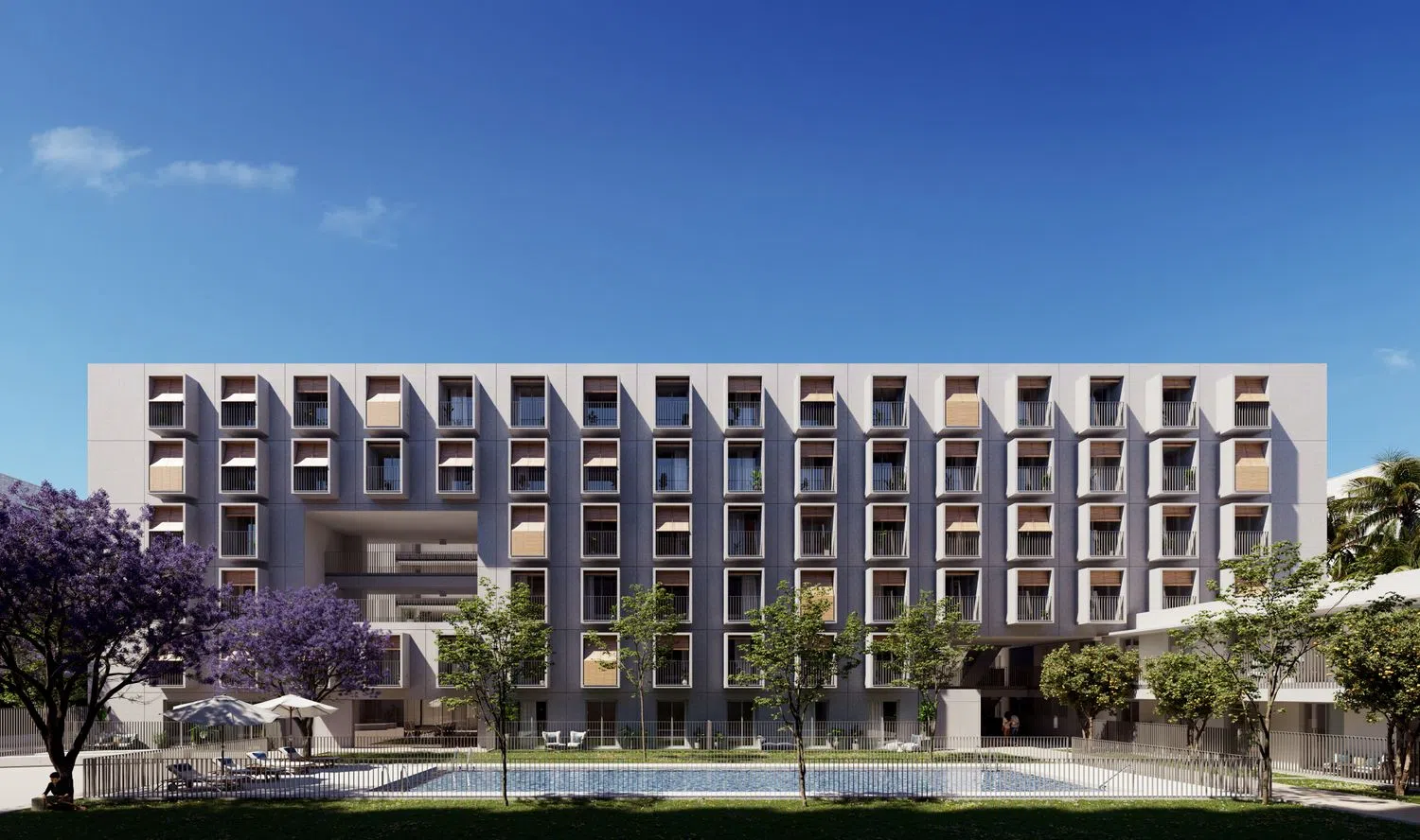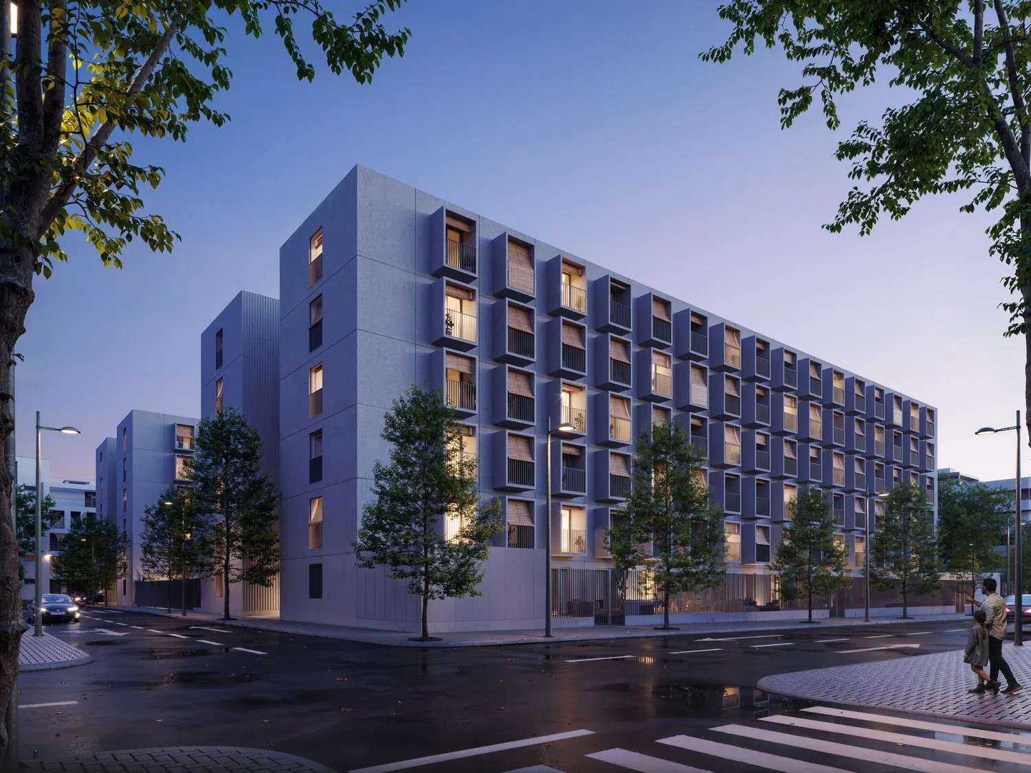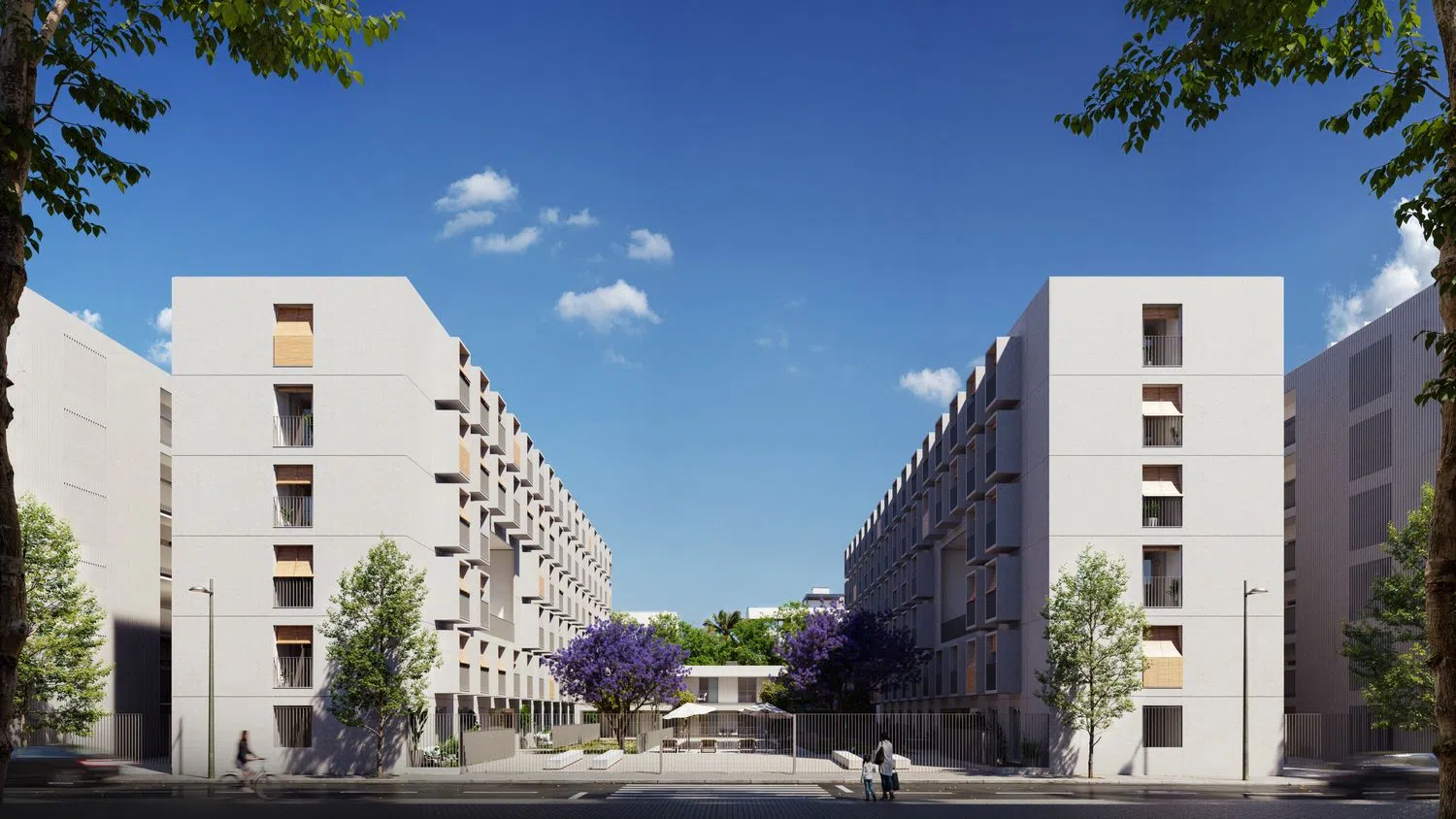 The project offers a diverse range of 95 three-bedroom apartments, with six specifically adapted for people with disabilities, alongside 42 two-bedroom options. Homebuyers can select from 17 different housing types, varying in layout, size, orientation, and more. All units provide pre-installed ducted climate control systems and a complete aerothermal setup, guaranteeing year-round comfort.