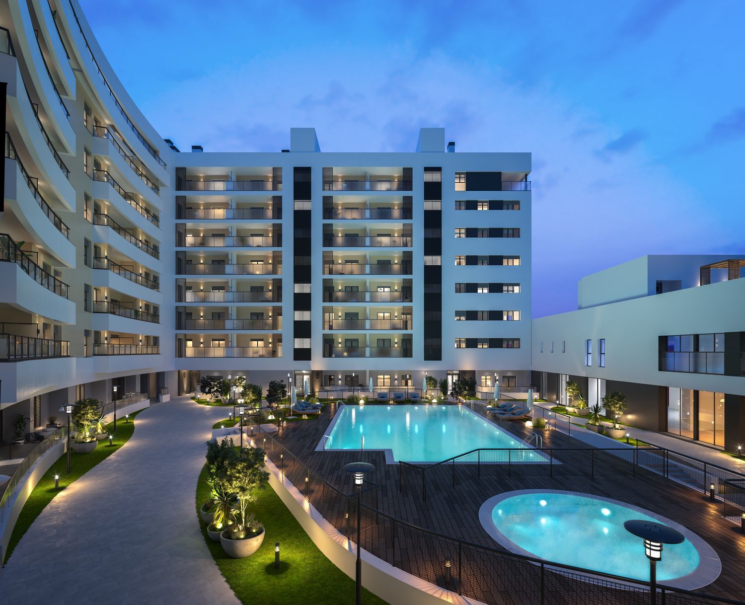 The development consists of 194 apartments ranging from 1 to 4 bedrooms, all including terraces, parking, and storage facilities. Nestled in a vibrant and expanding district with excellent connections, combines quality and sophisticated design to create a family-friendly environment with a variety of communal spaces.