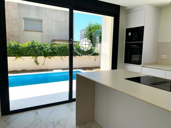 Exclusivo Chalet de Obra Nueva en Venta en El Dorado, Cambrils Mestral Estate, su inmobiliaria de referencia en Cambrils, le presenta esta espectacular vivienda de obra nueva, ubicada en la prestigiosa zona de El Dorado. Un chalet individual diseñado para ofrecer el máximo confort y modernidad, con espacios amplios, luminosos y acabados de alta calidad. Características de la Propiedad Este chalet de lujo cuenta con 377 metros cuadrados construidos y 231 metros cuadrados útiles, distribuidos en una amplia y funcional distribución que se adapta a todas las necesidades familiares. Dispone de cuatro habitaciones, incluyendo una habitación en planta baja, perfecta para mayor comodidad y accesibilidad. La vivienda también cuenta con tres baños modernos, diseñados con materiales de primera calidad y un estilo elegante. Espacios de Vida Cómodos y Funcionales El chalet ofrece un amplio salón-comedor con grandes ventanales, que permiten la entrada de luz natural y conectan con el jardín y la piscina privada, creando un ambiente perfecto para el relax y el entretenimiento. La cocina de diseño moderno está equipada con materiales de alta gama, pensada para los amantes de la gastronomía y la funcionalidad. Además, la propiedad cuenta con un lavadero independiente, que aporta un extra de practicidad al hogar. Exteriores y Extras Parcela de 400 metros cuadrados, con amplias zonas ajardinadas y espacios exteriores diseñados para disfrutar todo el año. Piscina individual, perfecta para refrescarse en los meses de verano. Parking privado con capacidad para tres coches, garantizando comodidad y seguridad. Ubicación Privilegiada Situado en El Dorado, Cambrils, una de las zonas más exclusivas de la localidad, este chalet se encuentra a pocos minutos de la playa y rodeado de todos los servicios esenciales. Cambrils es conocida por su alta calidad de vida, su gastronomía y su cercanía a la Costa Dorada y Tarragona. ¡No pierda esta oportunidad única! Si busca una vivienda de lujo, espaciosa y en una ubicación privilegiada, este chalet es la opción ideal para usted. Contáctenos en Mestral Estate y venga a descubrir su nuevo hogar en Cambrils. ¡Le esperamos!