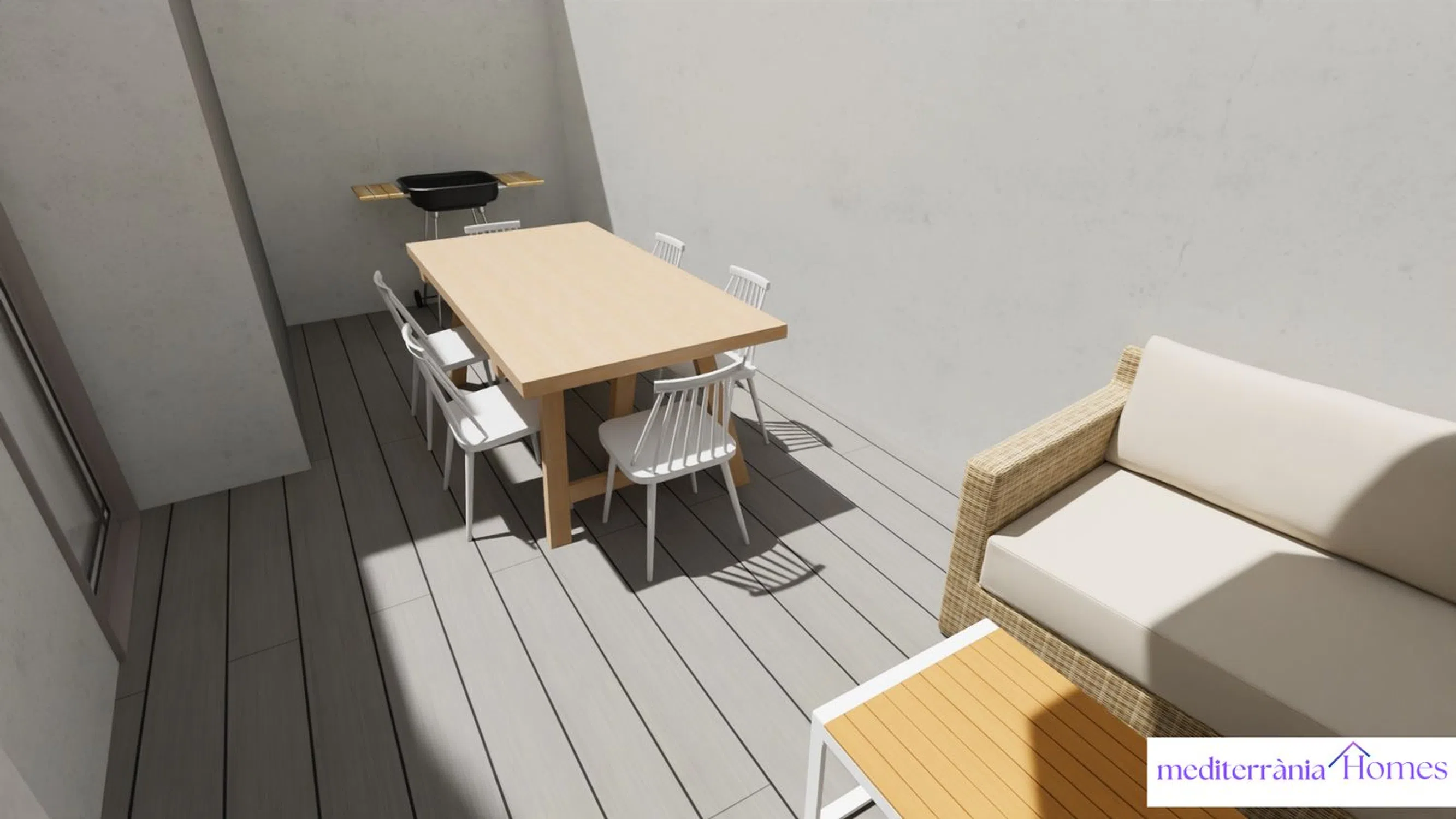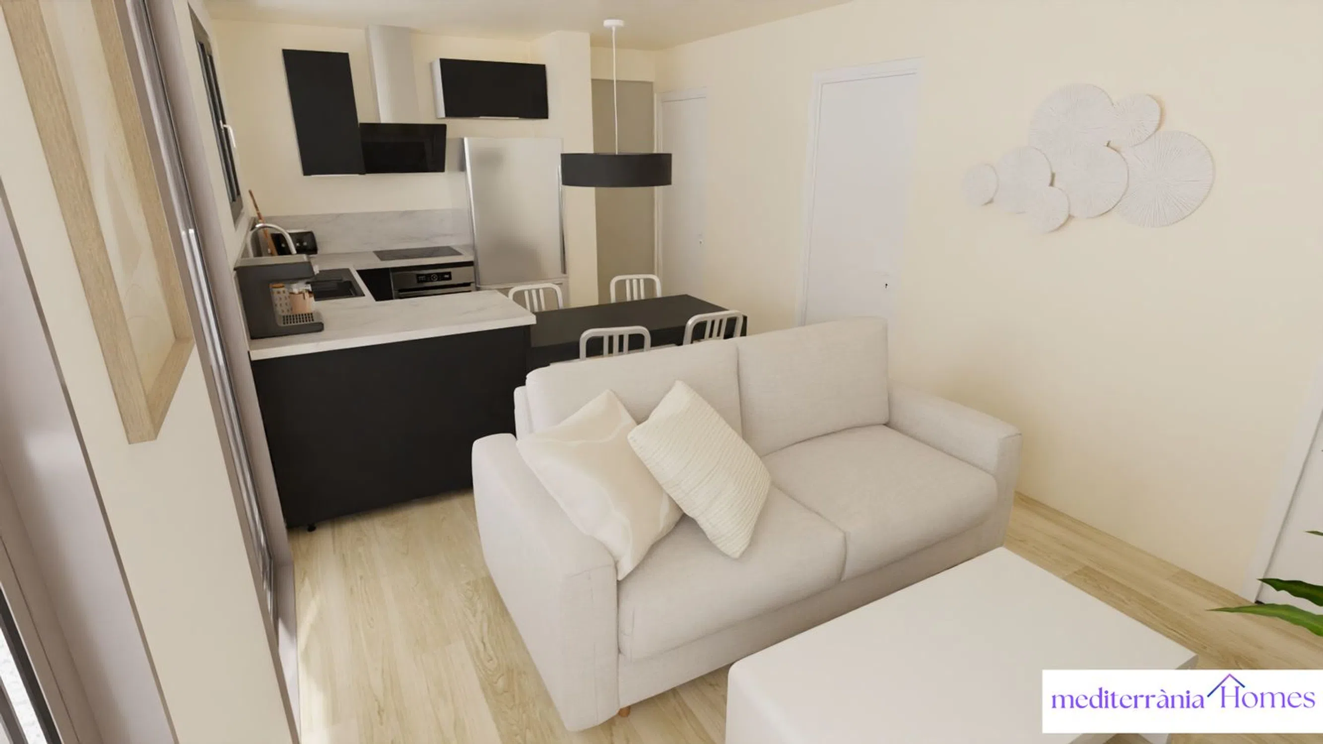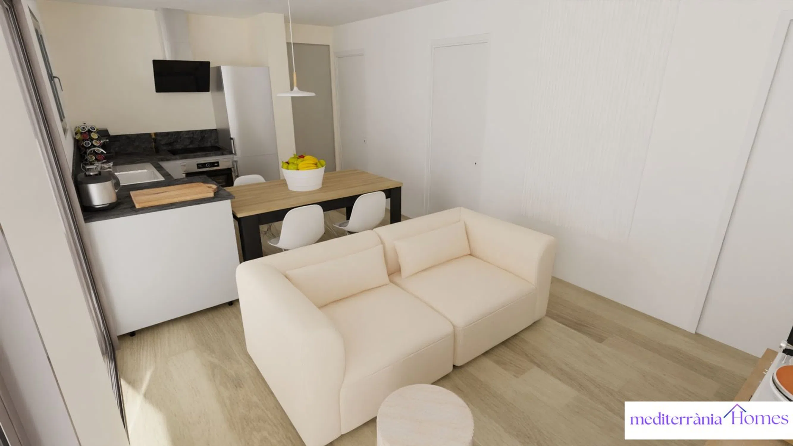 In one of the quietest and most connected streets of Cambrils, an exclusive new housing development is emerging, combining contemporary design, comfort, and energy efficiency. This development consists of only four homes—one per floor—in a modern building with high-quality finishes and a lightweight, efficient structure based on the Steel Framing system. The homes are designed with comfort and optimal space utilization in mind. Each unit features three bedrooms (one suite and two singles), two full bathrooms, a living area with an integrated open kitchen, and access to a balcony or private patio, depending on the floor.
