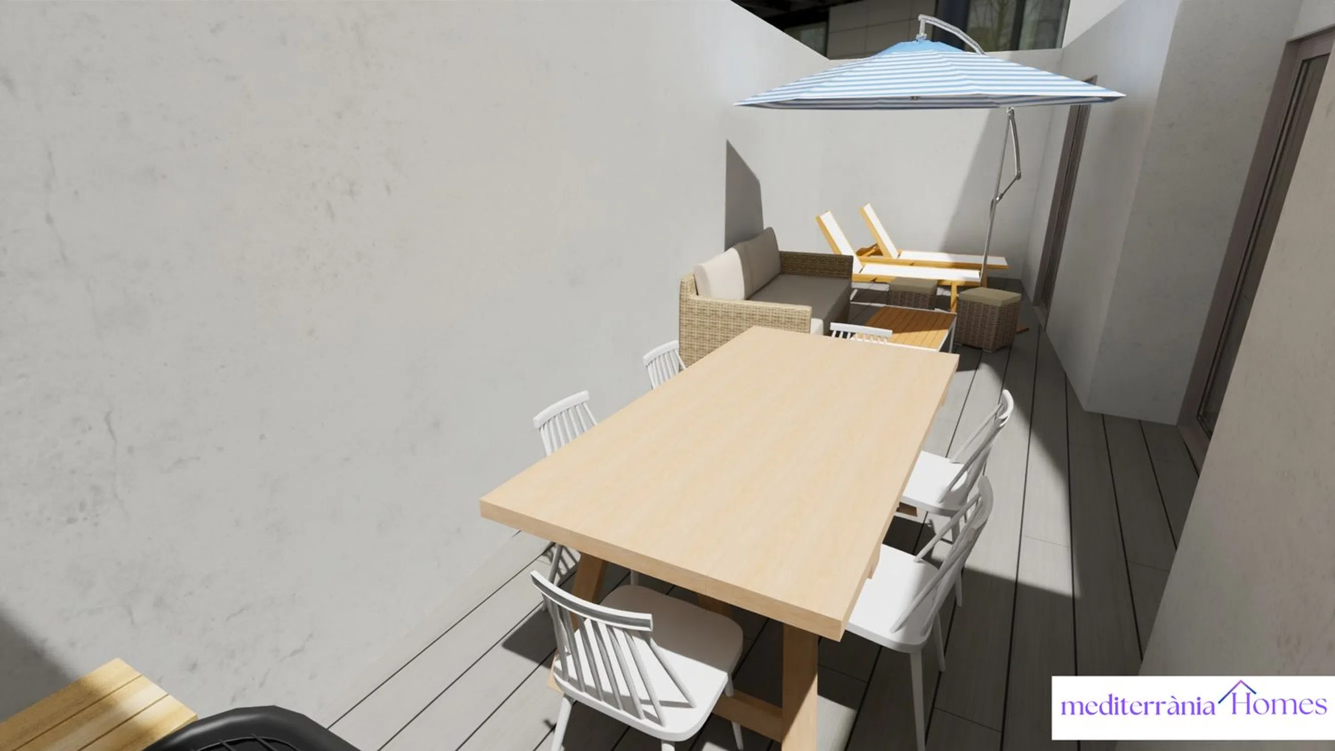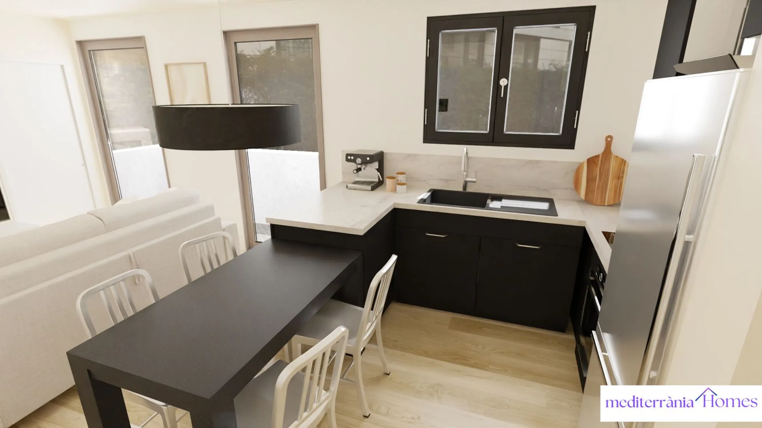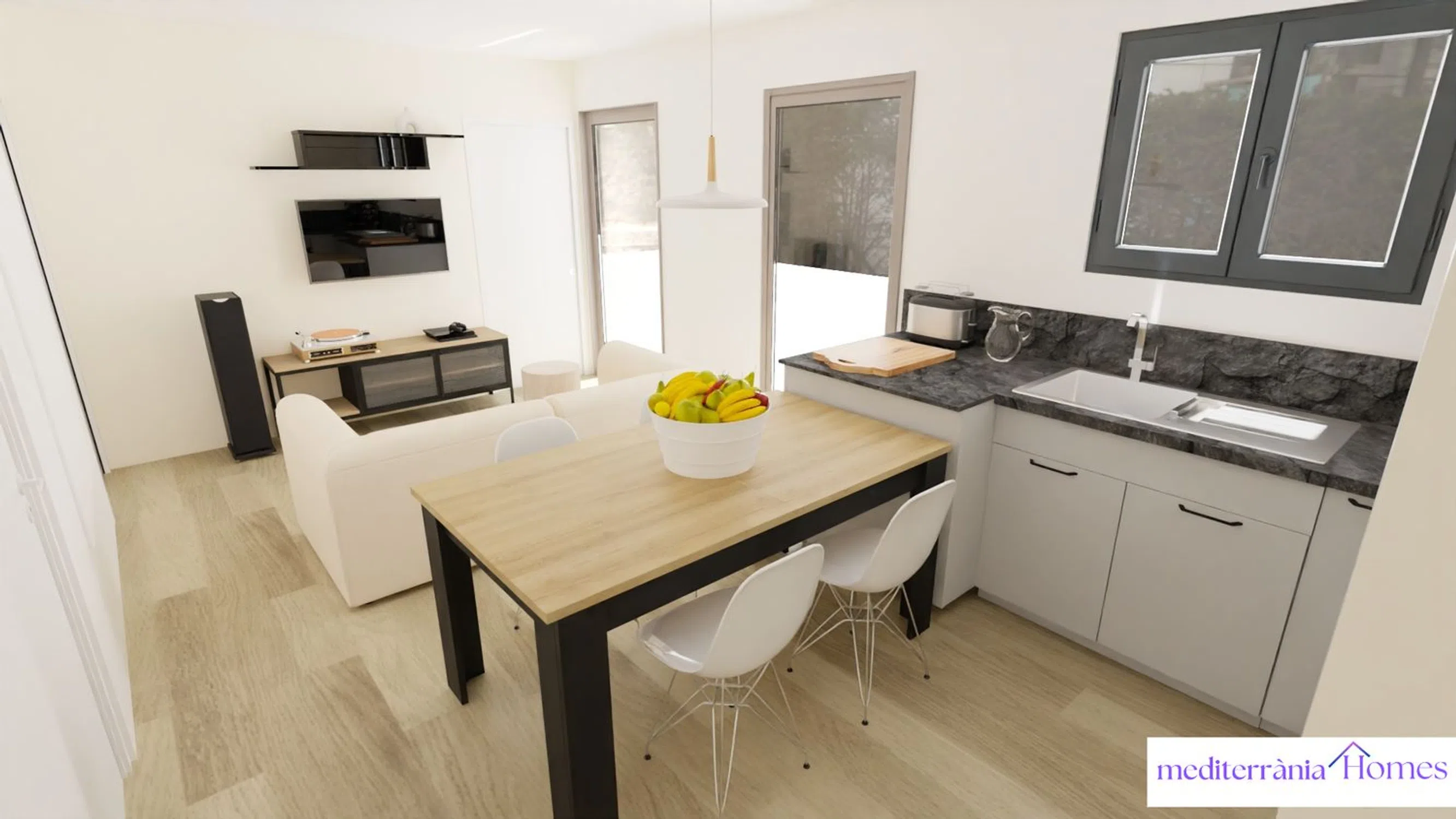 In one of the quietest and most connected streets of Cambrils, an exclusive new housing development is emerging, combining contemporary design, comfort, and energy efficiency. This development consists of only four homes—one per floor—in a modern building with high-quality finishes and a lightweight, efficient structure based on the Steel Framing system. The homes are designed with comfort and optimal space utilization in mind. Each unit features three bedrooms (one suite and two singles), two full bathrooms, a living area with an integrated open kitchen, and access to a balcony or private patio, depending on the floor.