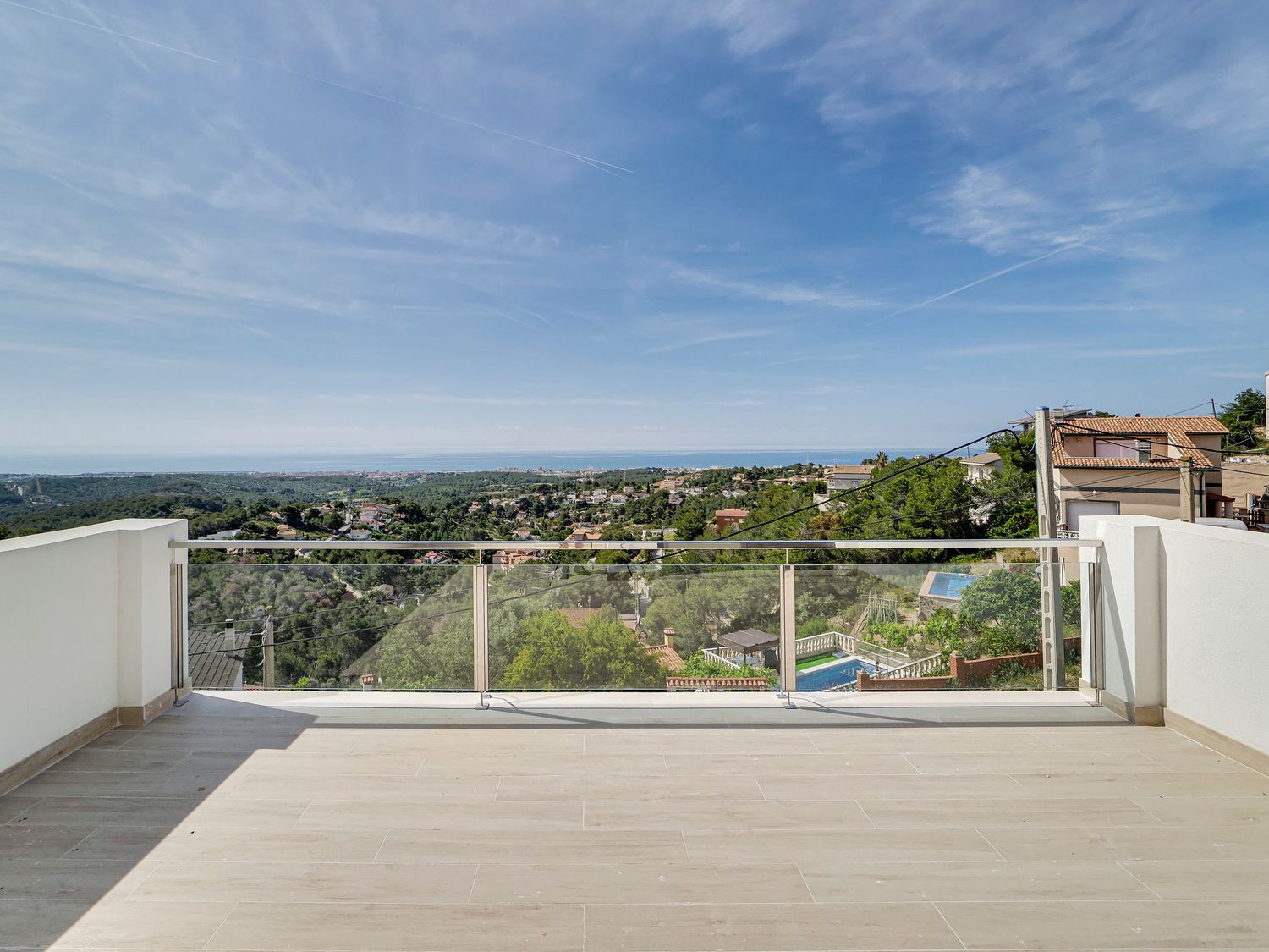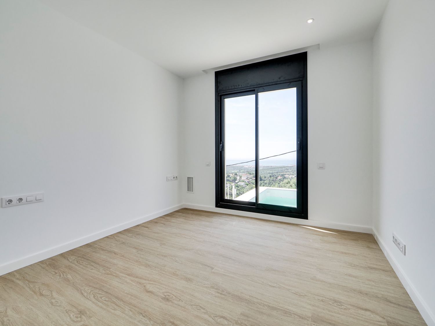 The second floor features two generous suites, each with its own private terrace, delivering intimate and exclusive living spaces. The ground floor provides two additional bedrooms, a full bathroom, and a terrace with direct access to the private pool, strategically located on the basement level.