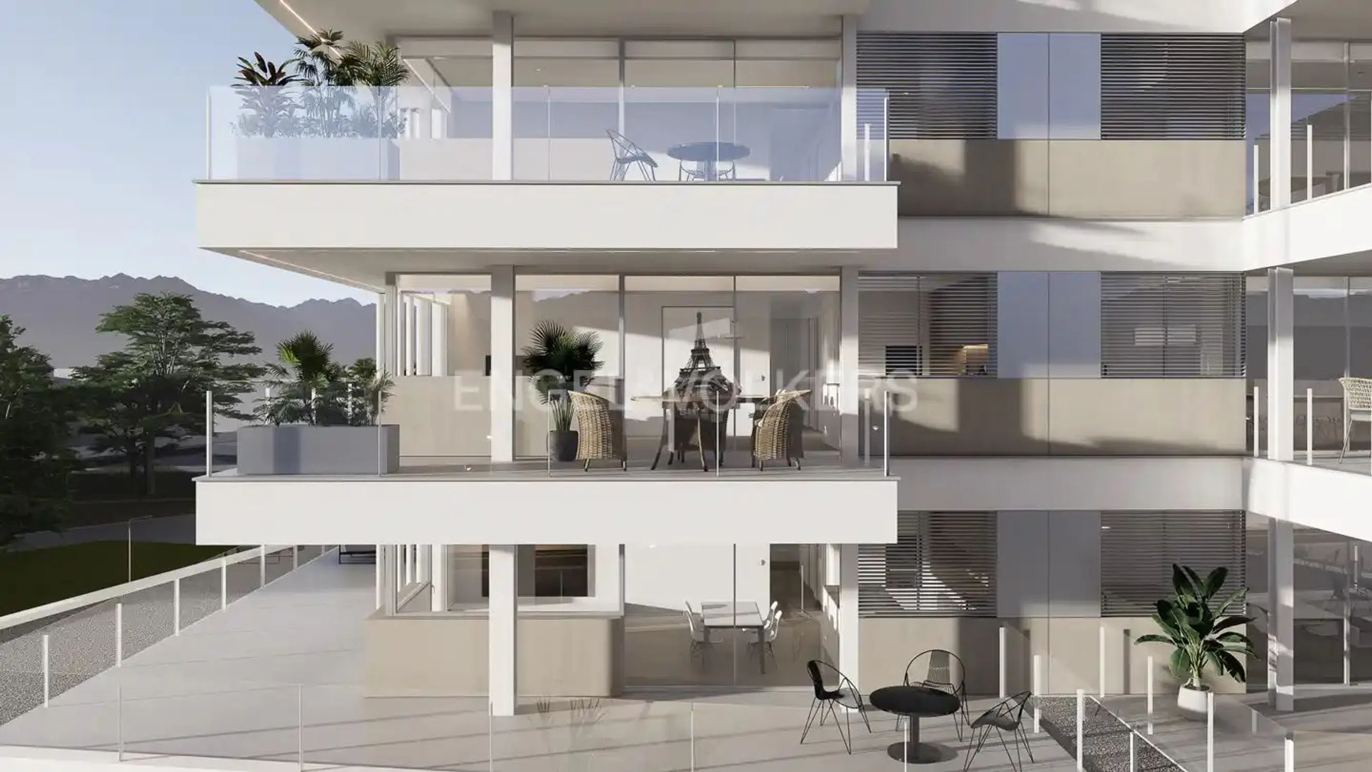This splendid project, featuring six apartments per floor, stands isolated, ensuring unobstructed views for each unit. The first-floor apartments have spacious terraces, perfect for those who desire outdoor space, while the upper floors provide large balconies for those who prefer them. Each residence includes three bedrooms, two full bathrooms, and an open kitchen-dining/living area facing the terraces or balconies. The choice of apartments will be made based on orientation.