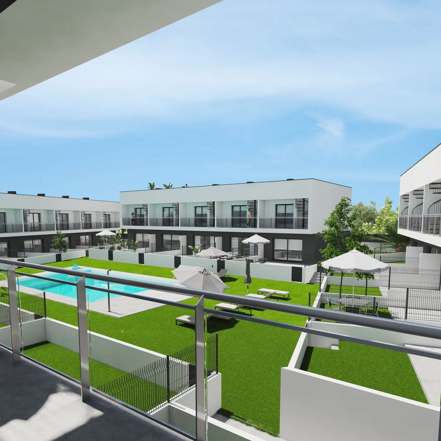 Feel the quality, notice the efficiency: • External thermal insulation system (SATE), to maintain home warmth in winter and coolness in summer • Clean energy with aerothermal for sanitary hot water • Thermal break carpentry and smart glass, caring for your comfort and consumption • High-quality rectified porcelain flooring, seamlessly flowing between interior and exterior • Solid and lacquered interior doors, a synonym of solidity and style • Armored main door, because security is also well-being