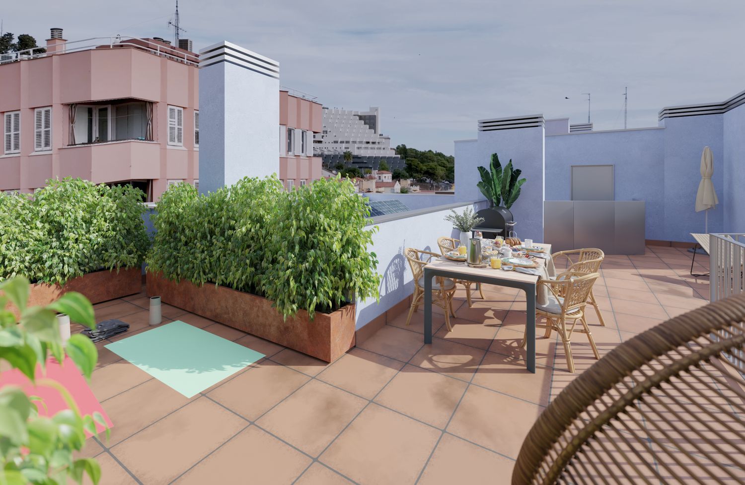 This residential masterpiece features two penthouse-duplexes at its top, each crowned with expansive terraces offering unmatched panoramic views. Designed with a focus on maximizing natural light, the apartments provide bright and welcoming spaces with superb orientation. For added convenience, the property includes ten parking spots and three private garages. A ground-level commercial space is ideal for ventures looking to thrive in a prime location. High-quality materials, open and airy designs, and innovative architecture come together to deliver a contemporary and sophisticated lifestyle.