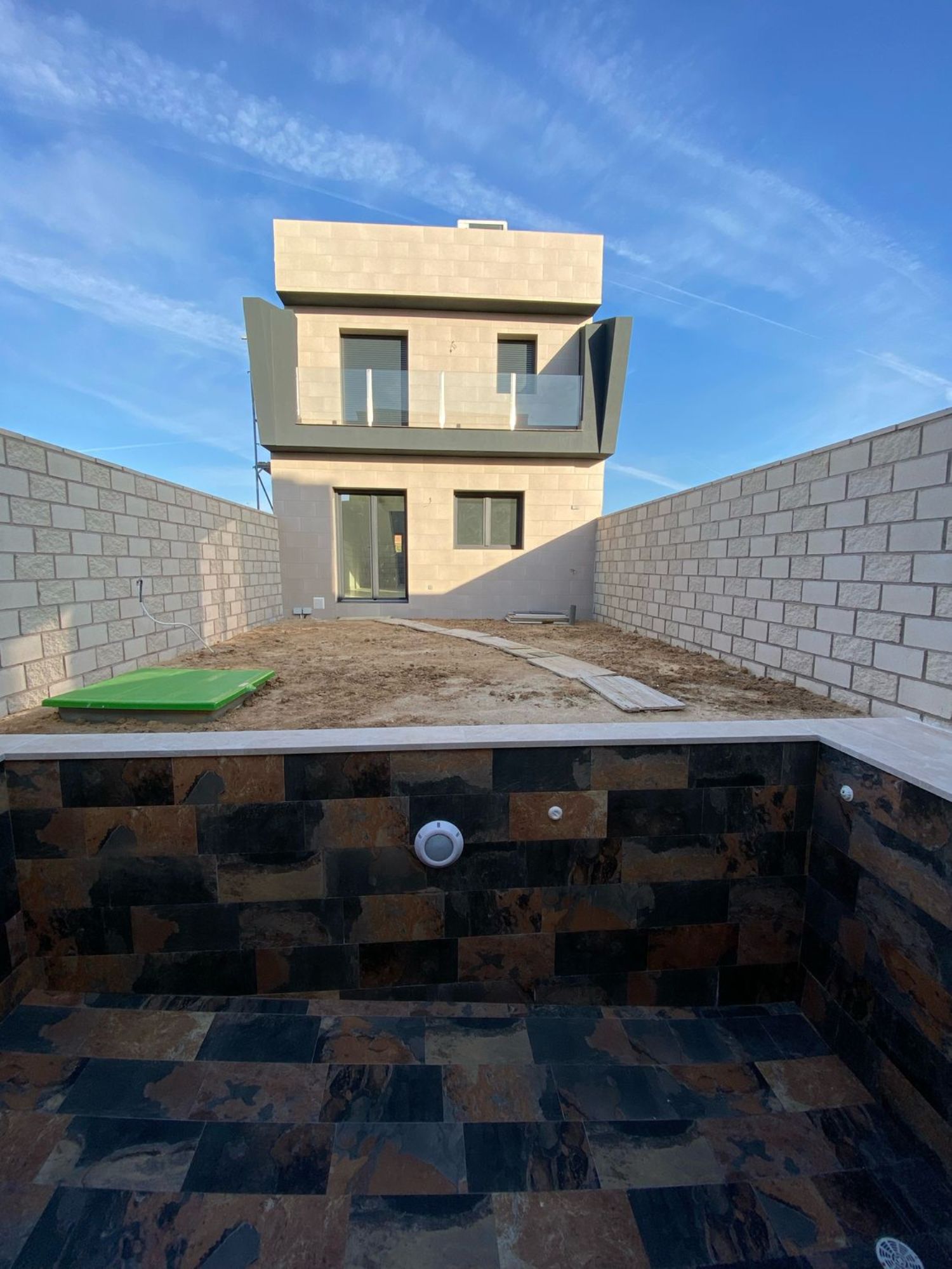 Descripción: OBRA NUEVA. venta directa, vivienda con entrega inmediata, MILU CONSTRUCCIONES presenta magnífica promoción de 3 viviendas ubicadas en VALMOJADO a 25 minutos de Madrid. La localidad dispone de centro de salud 24h, instituto, colegio, guarderías, equipamientos deportivos: pistas de padel, piscina municipal, campo de fútbol y gimnasio. También cuenta Varios supermercados, clínicas dentales y de fisioterapia, podólogo, farmacia, parafarmacia, óptica, clínica veterinaria, y entidades bancarias.Chalet construido en parcela de 200m2. 156m2 de construcción. distribuidos en dos plantas. vivienda de tres dormitorios. Tres baños. Terraza en habitación suite. Piscina y 2 plazas de garaje.PLANTA BAJA: se distribuye en luminosa y amplia habitación, 1 baño completo, cocina americana, salón/comedor con salida a piscina y jardín.PRIMERA PLANTA: cuenta con 2 dormitorios la primera es la habitación suite con vestidor y baño, esta habitación tiene salida a terraza con vista a la piscina. La segunda es una habitación doble con armario empotrado. En el pasillo encontrarás un baño completo y cuarto de lavandería.Construido con primeras calidades. Cuidando cada detalle…. Refrigeración y calefacción con sistema de aerotermia y suelo radiante. Vivienda con el efi ciencia energética…! Olvidate del alto coste de luz en tus facturas. Este chalet cuenta con paneles solares para un coste mínimo en tus facturas de luz.CARACTERISTICAS DE LA VIVIENDA.-fachada en piedra caliza.-Paneles solares.- Ventanas de PVC con rotura de puente térmico de color gris (máximo aislamiento)- refrigeración y calefacción con aerotermia mediante suelo radiante.- Agua caliente por aerotermia.- Armarios empotrados- puerta de garaje motorizada- Suelos porcelanico imitación mármol- Vídeo portero en planta baja y primera planta- Barandillas de pasillo, escalera y terraza de cristal.- Piscina de 6x3 alicatado de primera.Contacta con nosotros y ven a conocer la casa de tus sueños! te ayudamos a gestionar tu hipoteca.