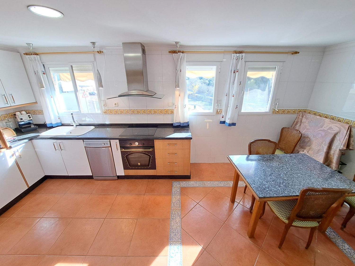 Adosado con excelentes calidades y con muchas mejoras como persianas automatizadas, a. a. centralizado con sistema airzone, rejas en todas las ventanas, pasamanos de la escalera de madera noble. Esta precioso adosado consta en la planta baja de un garaje con capacidad para varios vehículos.Planta primera distribuida en un salón muy amplio desde el que se accede a la terraza la cual dispone de una preciosa barbacoa, cocina amplia con espacio para mesa de varios comensales y un baño completo.La planta segunda dispone de 3 habitaciones con armarios empotrados y con mucha luz natural.Ultima planta con una sala diáfana para multiusos. La vivienda consta de acceso a las planta altas mediante salvaescaleras, en caso de necesitarlo.