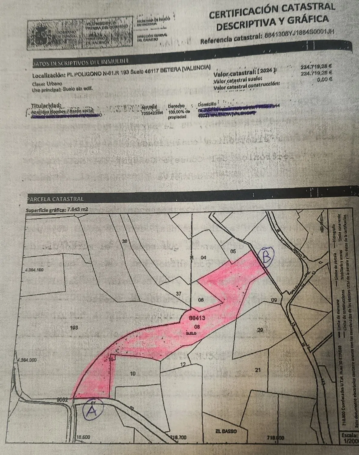 Terreno urbano, no edificable, pai paralizado.