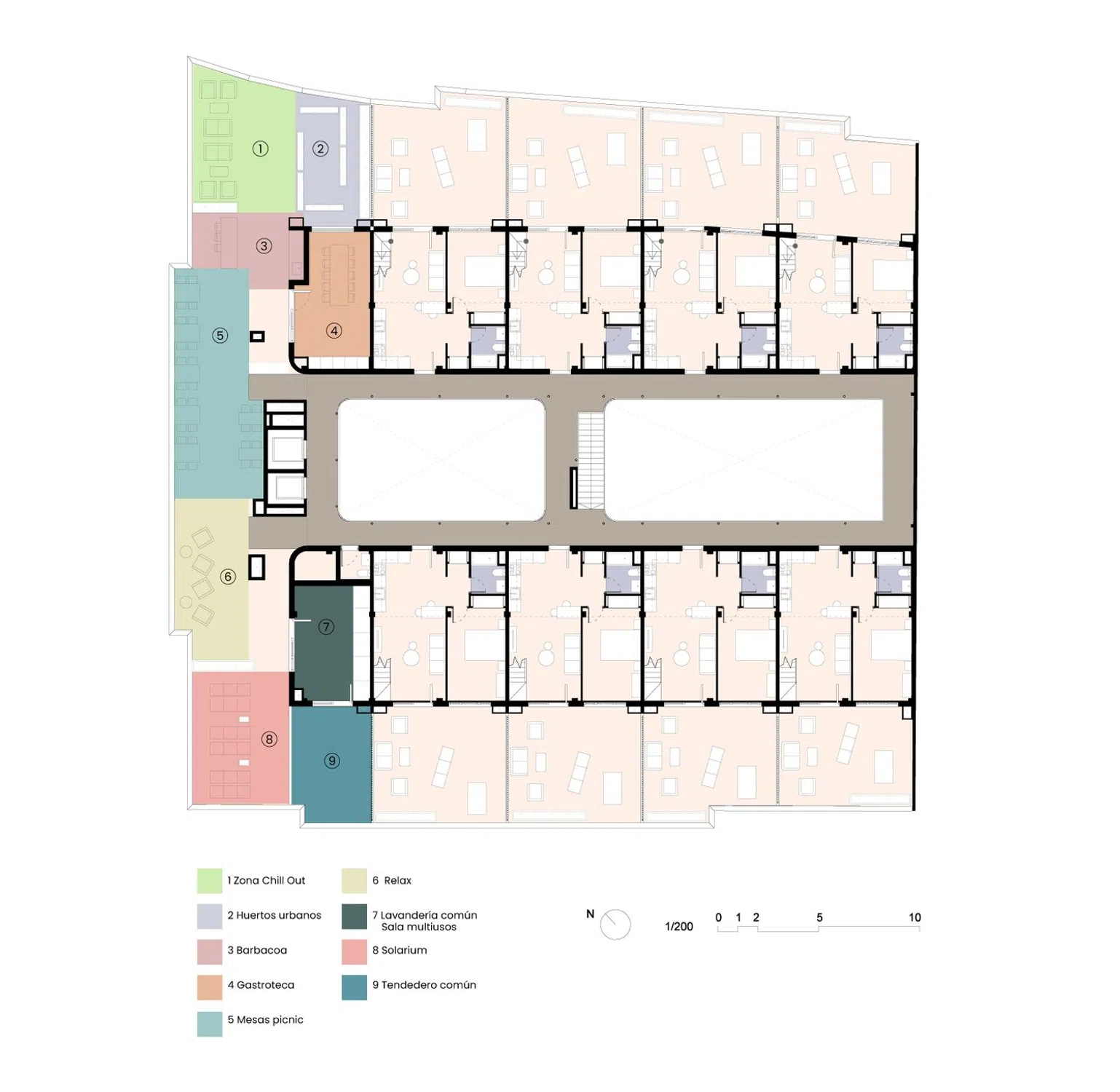 This sustainable residential project offers 74 homes with 1 and 2 bedrooms, featuring premium common spaces like a gym, coworking area, rooftop solarium, gastroteque, barbecue, laundry, and urban garden.