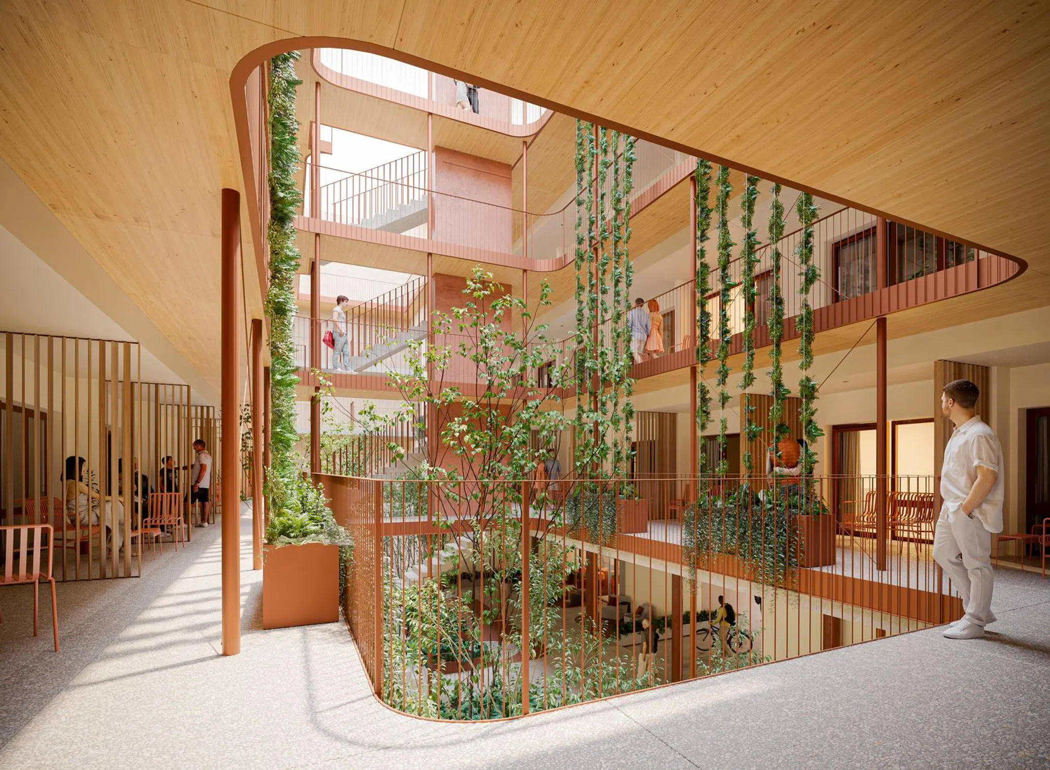 - Views of the surrounding areas, designed around a large central courtyard with natural light, cross ventilation, landscaped areas, and spaces for social interaction.
