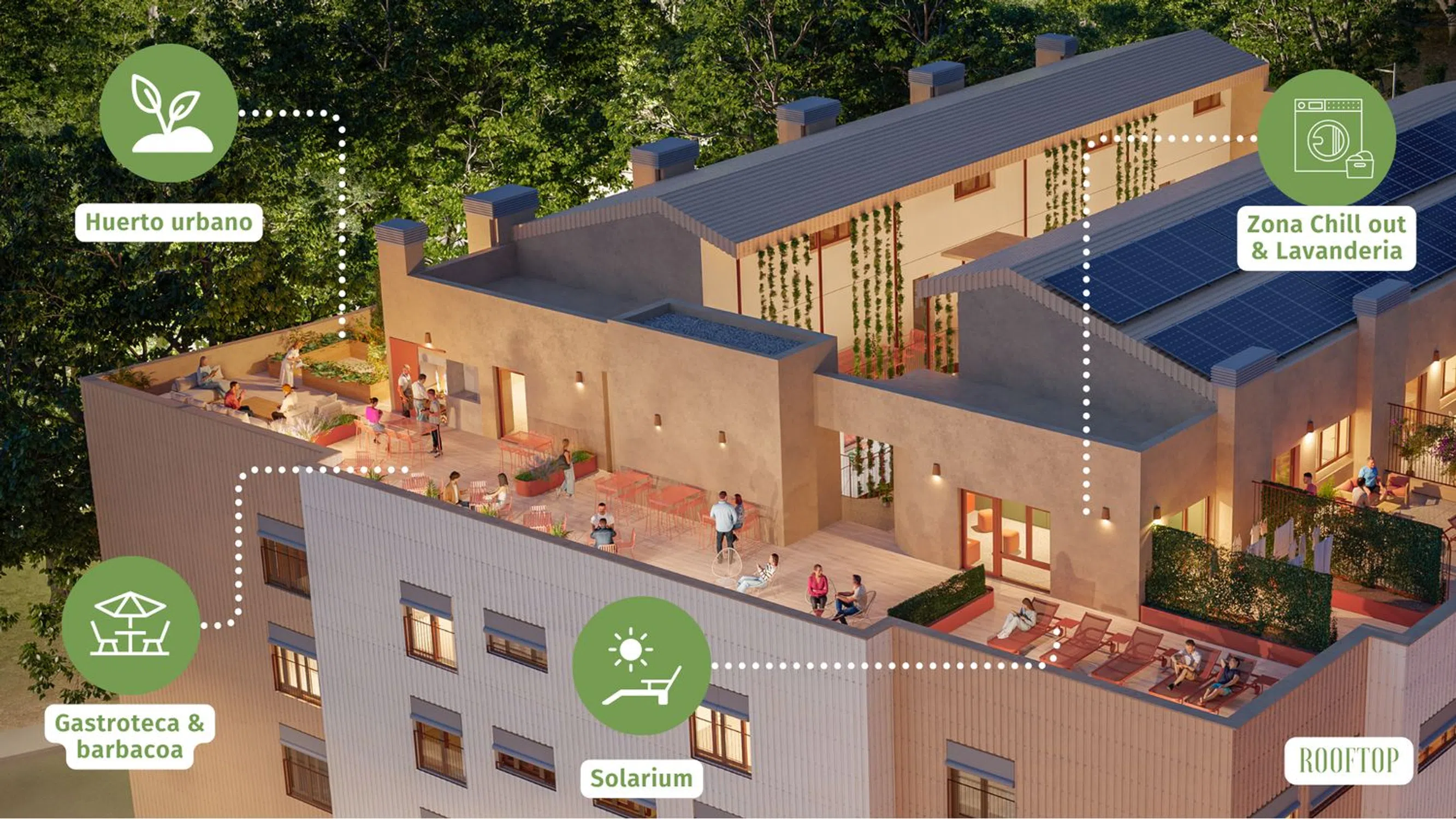 - Sustainable residential building with high energy efficiency and a green certification.