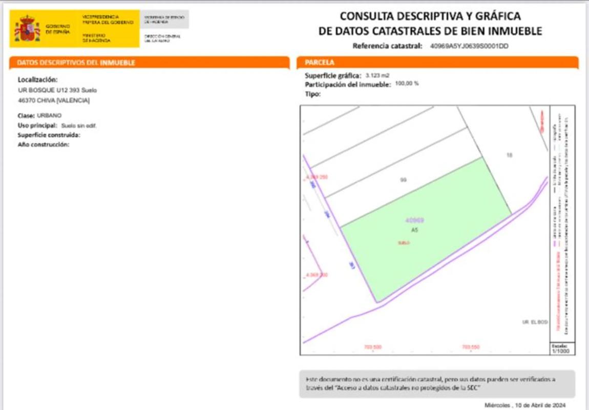 Excelente oportunidad de adquirir este suelo urbano residencial. Se trata de una parcela de uso unifamiliar en el municipio de Chiva, Valencia, localizada en la urbanización El Bosque. La pa...