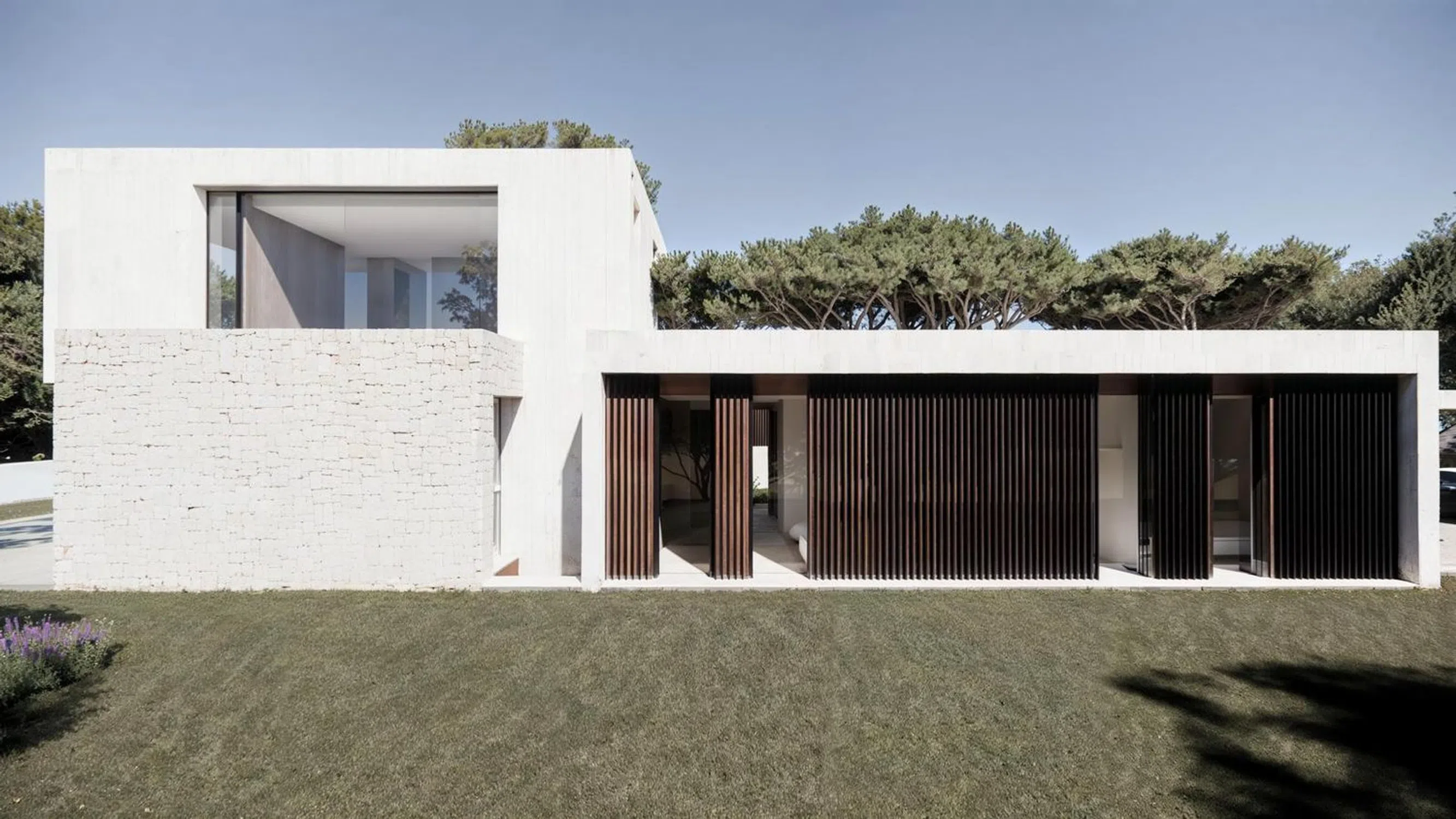 The open-plan basement offers multiple usage possibilities, with enough water outlets to install a spa area and natural light. The ground floor features an impressive living-dining room with 6m high ceilings, a designer open kitchen, three double bedrooms, and two full bathrooms, one with a bathtub and a spectacular skylight that illuminates the entire space. The first floor includes a fourth bedroom, also with an ensuite bathroom. The finishes match the exquisite design: high-end windows, Porcelanosa materials throughout the house, and large format porcelain tiles both inside and in the spectacular private 8x4 meter swimming pool. The exterior is fully clad with natural stone masonry combined with travertine natural stone and vertically positioned IPE wood paneling. It is energy-efficient with an A-type rating, ensuring maximum comfort year-round.