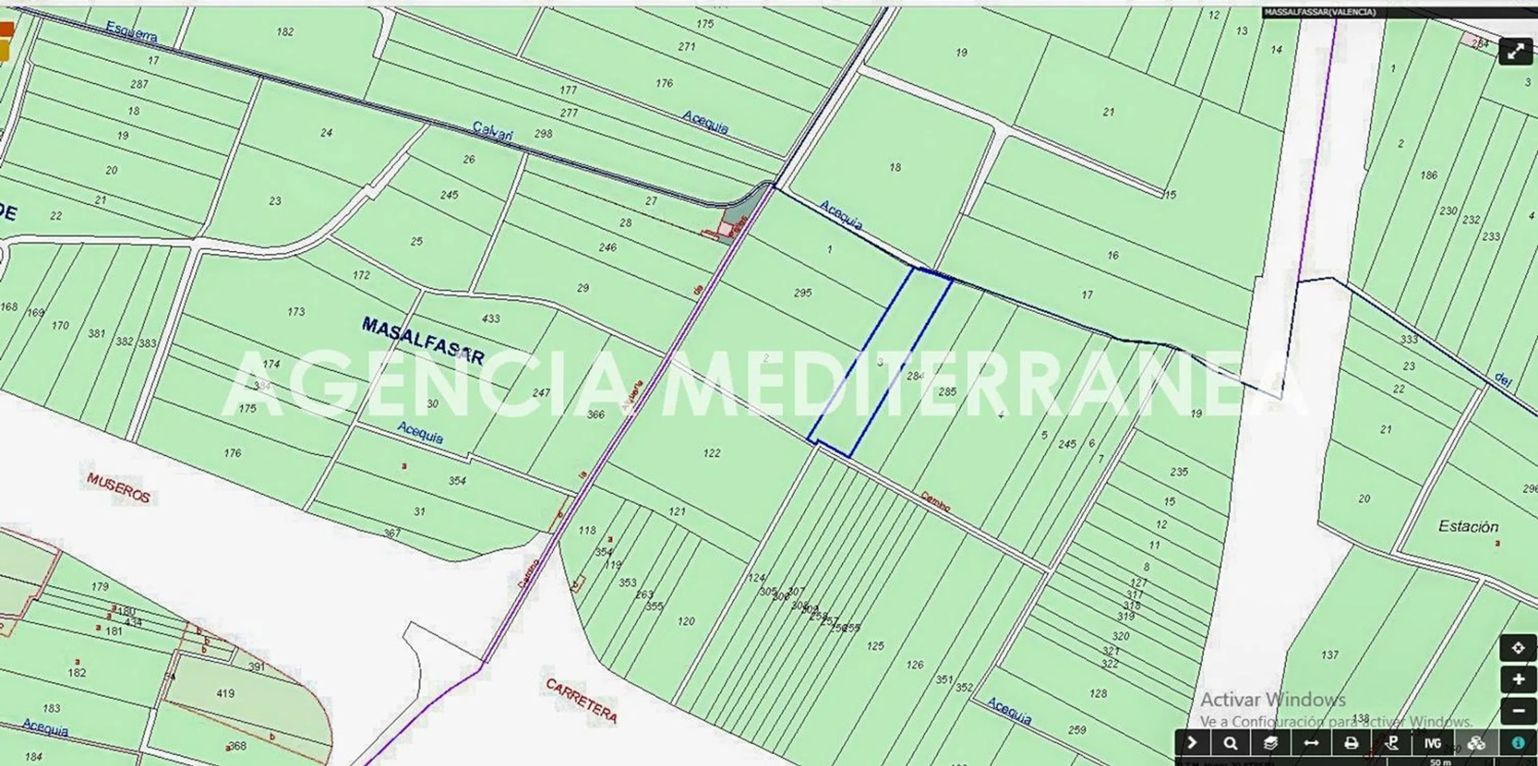 AGENCIA MEDITERRÁNEA VENDE PARCELA DE 2 HANEGADAS Y MEDIA: 1876 M2 Suelo agrario destinado para adecuarlo a cualquier cultivo ya que dispone de una acequia en el borde de la parcela. Situado al lado de la carretera de Museros y a tres minutos del pueblo de Massalfassar. Suelo totalmente limpio y preparado para explotarlo AGENCIA MEDITERRÁNEA está inscrita en el Registro de Agentes de Intermediación Inmobiliaria de la Comunidad Valenciana RAICV 2002. Llámanos al TELEF: y te ampliamos toda la información. Si lo necesitas te ayudamos a conseguir la mejor financiación. Ven a visitarlo.
