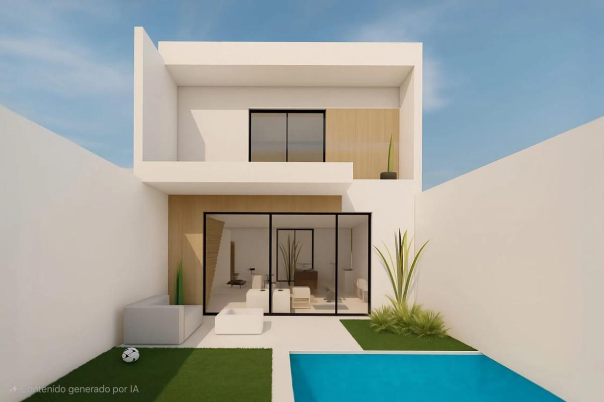 La casa unifamiliar entre medianeras tiene una superficie útil de 184 m2. Tiene piscina y garaje. En la planta baja estaría el garaje, hall, un baño completo, una despensa, salón- cocina (to...