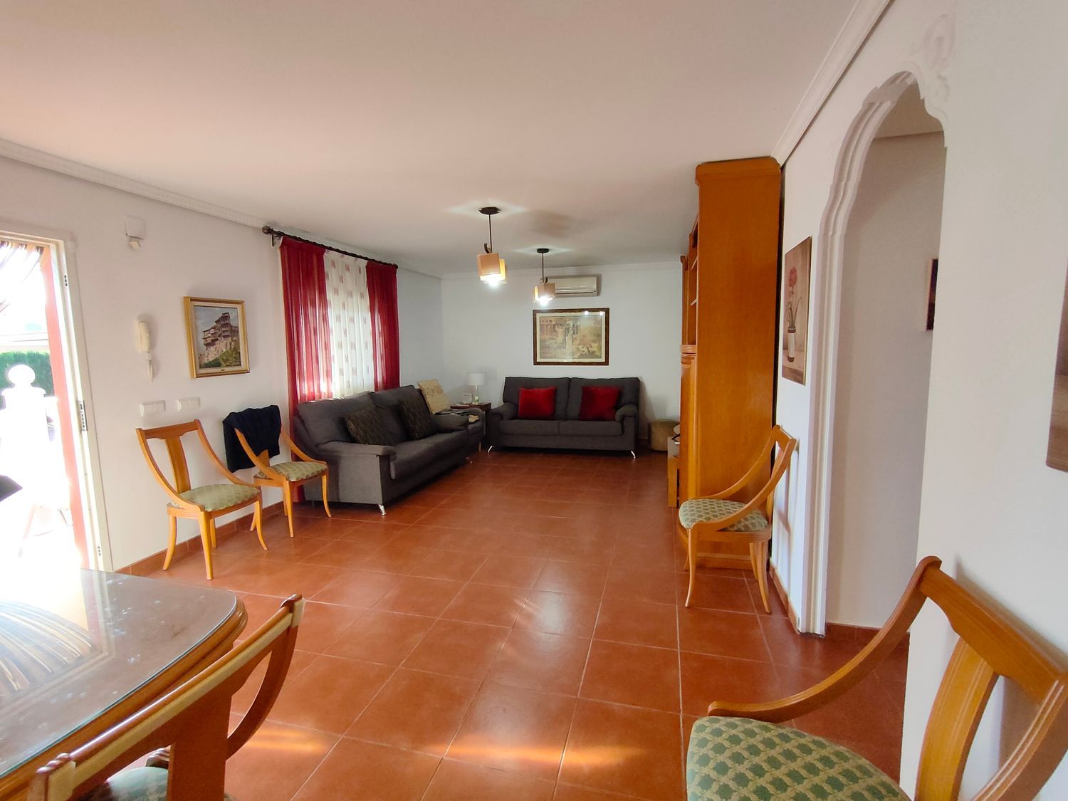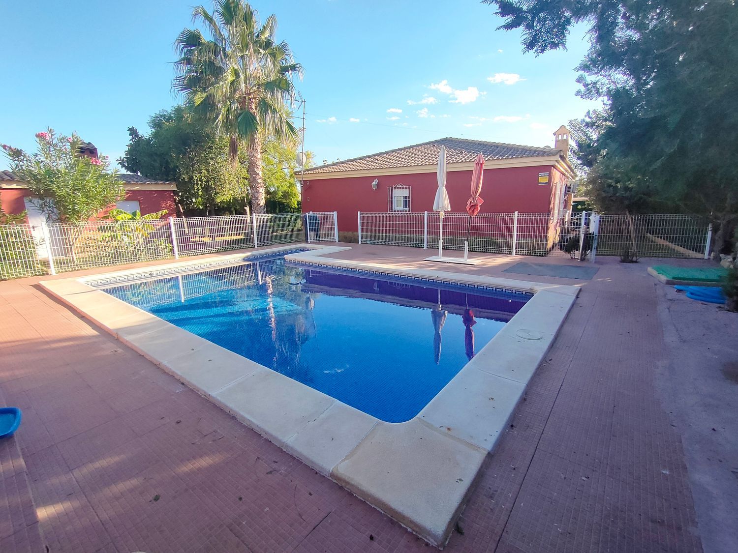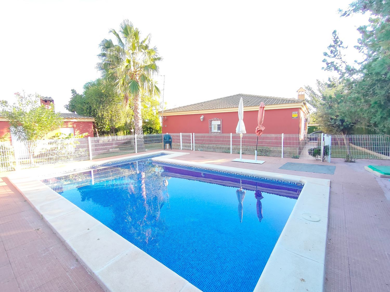 Hermoso chalet rústico en venta, en una ubicación privilegiada cerca de la población. Disfruta de la tranquilidad de tener vecinos que residen todo el año. La propiedad cuenta con una amplia parcela de 830m2 totalmente llana, pavimentada con hormigón impreso y rodeada de áreas de césped y árboles ornamentales. Además, cuenta con sistema de riego por aspersión y una iluminación exterior que realza el encanto del jardín.El chalet, construido en el año 2005, se distribuye en una sola planta y ofrece comodidad y funcionalidad. Destaca su gran terraza cubierta, perfecta para disfrutar de reuniones al aire libre. En su interior, encontramos un luminoso salón comedor con aire acondicionado, y una amplia cocina bien equipada. Además, dispone de 4 dormitorios dobles de buen tamaño, 2 de ellos con aire acondicionado y 2 con radiadores. El baño completo cuenta con una elegante mampara de pavés.La propiedad cuenta con suelos de gres rústico, ventanas climalit con mosquiteras y rejas para mayor seguridad. Además, ofrece un bonito paellero con cocina de verano, ideal para disfrutar de deliciosas comidas al aire libre. También dispone de un trastero y una porchada para dos vehículos.Para disfrutar de los días soleados, la propiedad cuenta con una amplia piscina con depuradora y gresite, además de un amplio baño exterior junto a la piscina. La comodidad está garantizada con una puerta de acceso motorizada para vehículos.No pierdas la oportunidad de adquirir este encantador chalet rústico, ideal para aquellos que buscan un hogar acogedor y tranquilo. ¡Contáctanos ahora para más información!