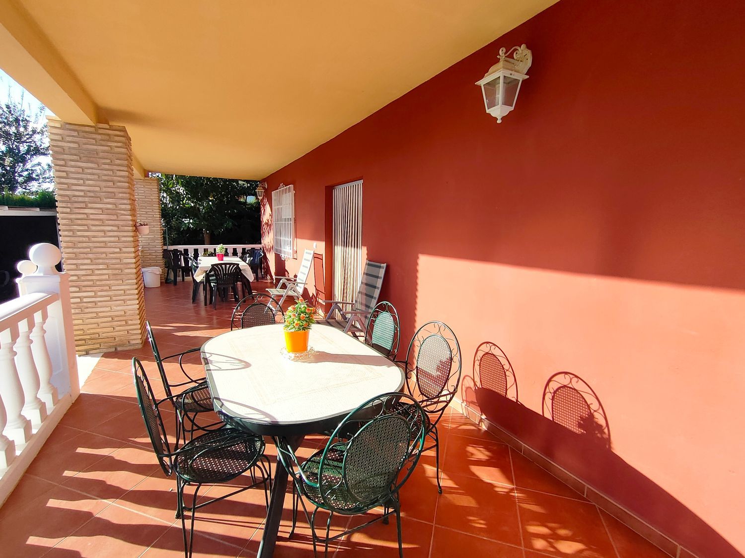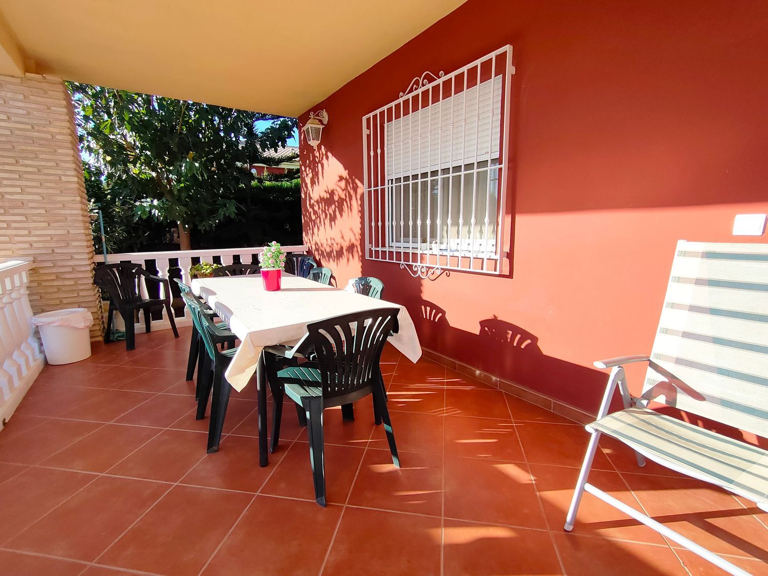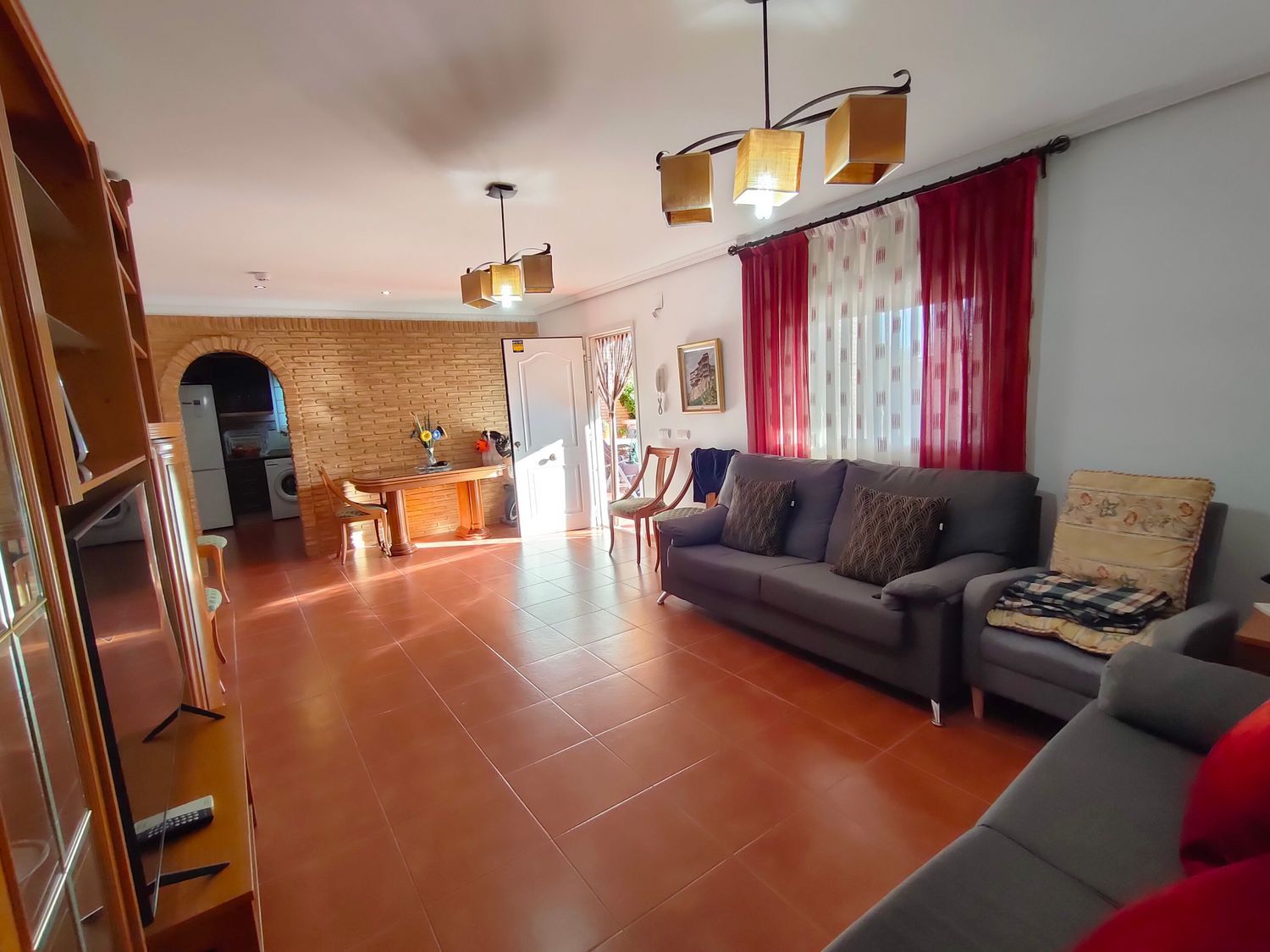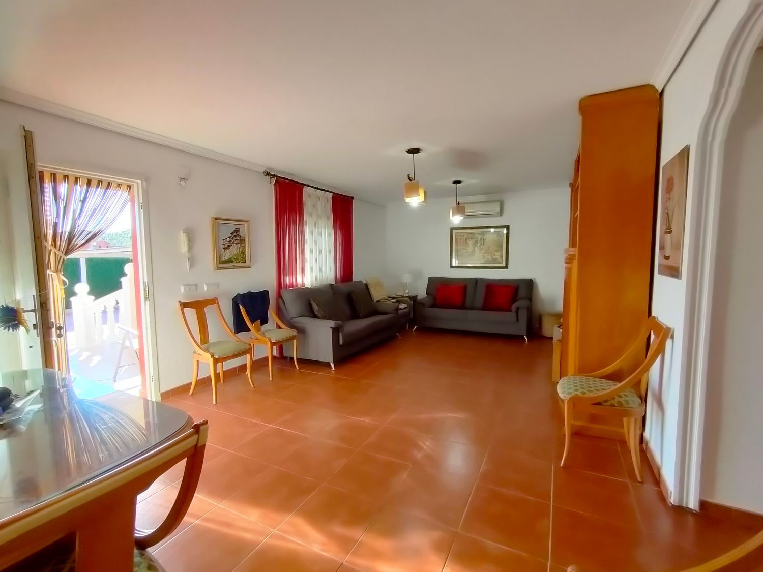 Hermoso chalet rústico en venta, en una ubicación privilegiada cerca de la población. Disfruta de la tranquilidad de tener vecinos que residen todo el año. La propiedad cuenta con una amplia parcela de 830m2 totalmente llana, pavimentada con hormigón impreso y rodeada de áreas de césped y árboles ornamentales. Además, cuenta con sistema de riego por aspersión y una iluminación exterior que realza el encanto del jardín.El chalet, construido en el año 2005, se distribuye en una sola planta y ofrece comodidad y funcionalidad. Destaca su gran terraza cubierta, perfecta para disfrutar de reuniones al aire libre. En su interior, encontramos un luminoso salón comedor con aire acondicionado, y una amplia cocina bien equipada. Además, dispone de 4 dormitorios dobles de buen tamaño, 2 de ellos con aire acondicionado y 2 con radiadores. El baño completo cuenta con una elegante mampara de pavés.La propiedad cuenta con suelos de gres rústico, ventanas climalit con mosquiteras y rejas para mayor seguridad. Además, ofrece un bonito paellero con cocina de verano, ideal para disfrutar de deliciosas comidas al aire libre. También dispone de un trastero y una porchada para dos vehículos.Para disfrutar de los días soleados, la propiedad cuenta con una amplia piscina con depuradora y gresite, además de un amplio baño exterior junto a la piscina. La comodidad está garantizada con una puerta de acceso motorizada para vehículos.No pierdas la oportunidad de adquirir este encantador chalet rústico, ideal para aquellos que buscan un hogar acogedor y tranquilo. ¡Contáctanos ahora para más información!