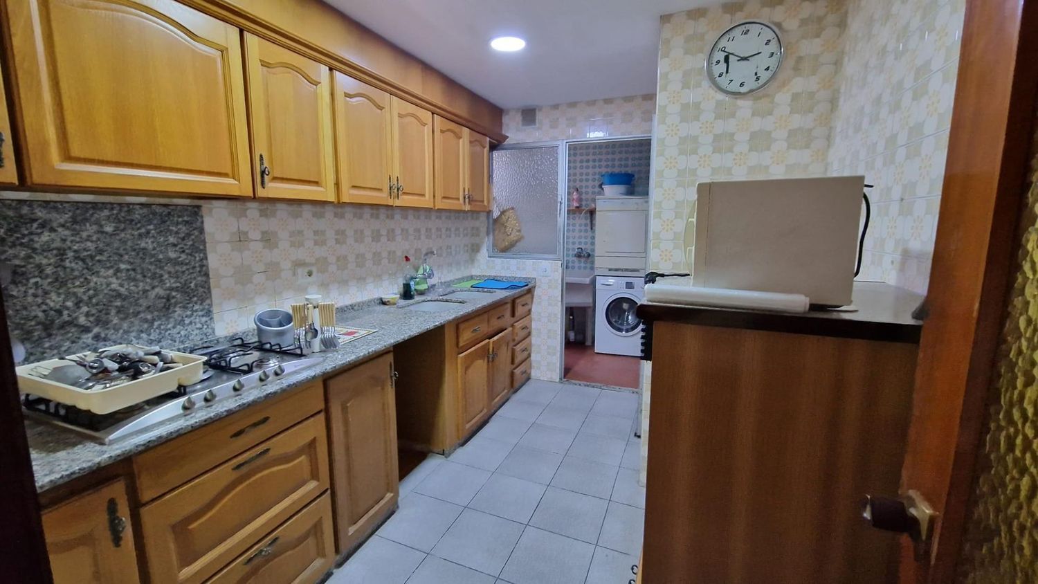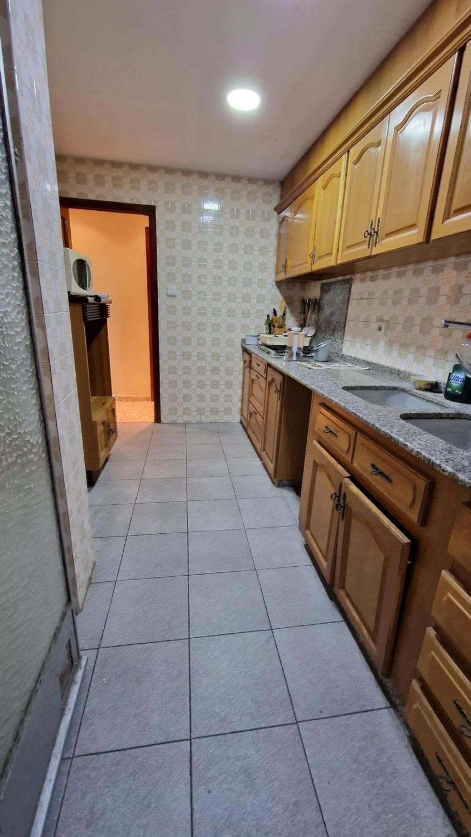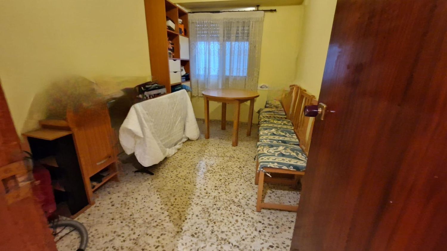 Piso de 133m3 distribuido en: Recibidor con puerta principal de seguridad, video-portero. Salón-comedor con balcón de aprox. 4m2, con reja y mosquitera, orientado al sur, muy luminoso y soleado. Suelo de terrazo claro, puertas de paso de madera, ventanas de aluminio. Paredes lisas.4 habitaciones, 2 sencillas y dos dobles. Una de las sencillas da a la calle, junto al salón, y una de las habitaciones dobles tiene armario empotrado. En el pasillo hay dos pequeños armarios trasteros y una alacena, así como otro trastero algo más grande, de unos 3m2. 2 baños completos, los dos con ducha con mampara, uno de ellos también con bidé; ambos con lavabo con mueble encastrado. La cocina, con muebles altos y bajos de madera, bancada de mármol, encimera, fregadero de doble seno de mármol con grifo monomando. Galería con calentador de gas ciudad, y lavadero, con acceso a una terraza de aprox. 8m2. Se trata de un primer piso con ascensor(con rampa de acceso) en finca muy céntrica, con todo tipo de servicios muy a mano. A 1 min, de la calle Mayor, del Centro de Salud, de comercios, bancos, colegios, etc. A 5 min de metro. (posibilidad de local de para guardar varios coches justo debajo).La vivienda está perfectamente habitable. Luz y agua.