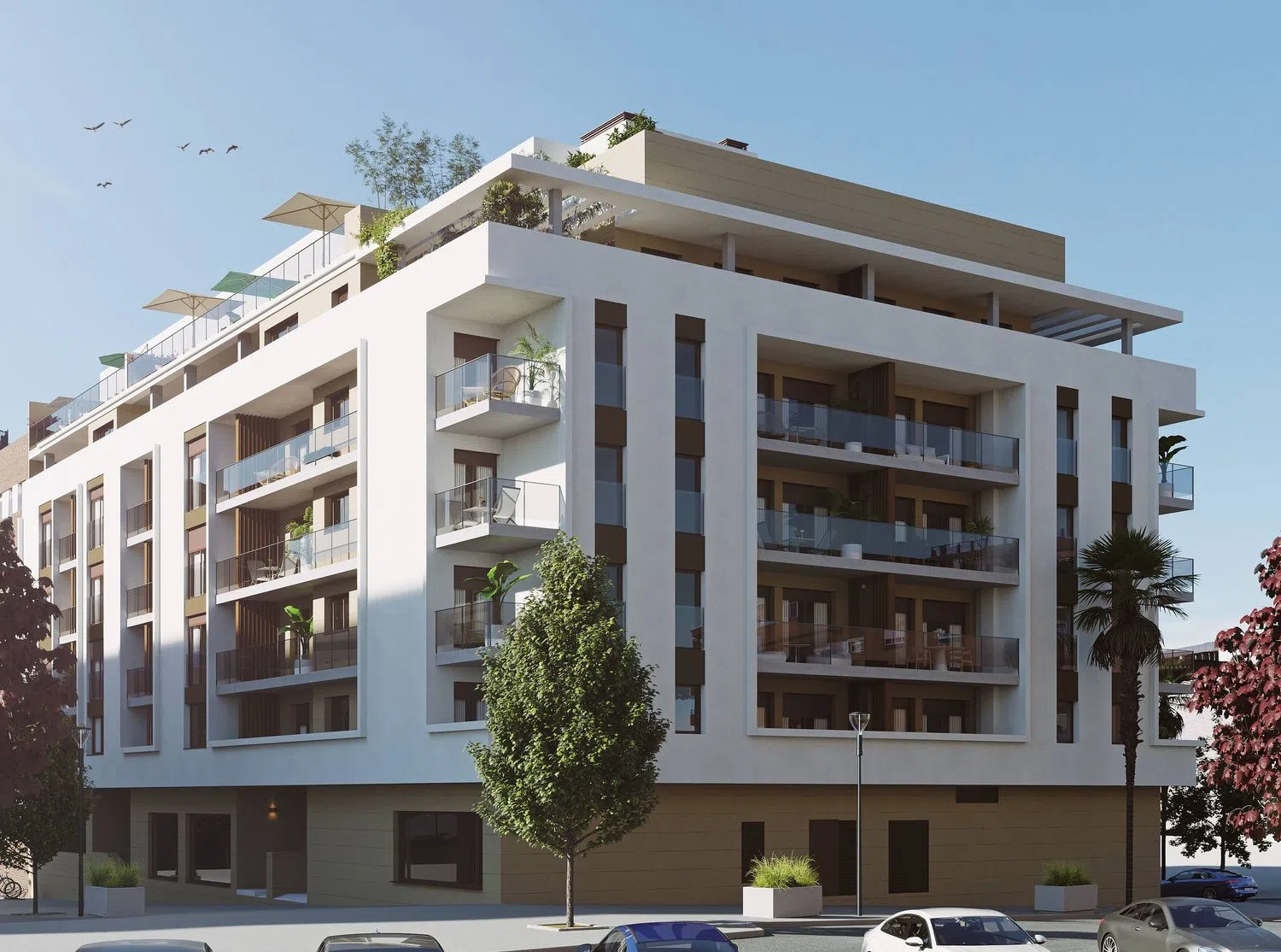 Each home features well-organized layouts with spacious walk-in closets in the main bedrooms. The interiors are adorned with top-quality Porcelanosa flooring and finishes. The kitchens are equipped with high-end appliances, including a cooktop, extractor hood, oven, and microwave tower, subject to the kitchen layout. The price range for these homes is between 249,000 € and 265,500 €, with living spaces ranging from 107 m² to 118 m². Please note that parking is not included in the final price of each home. Construction is scheduled to begin in the second quarter of 2024, with a sales office conveniently located on-site. The building permit has been approved, ensuring everything is set to proceed smoothly.