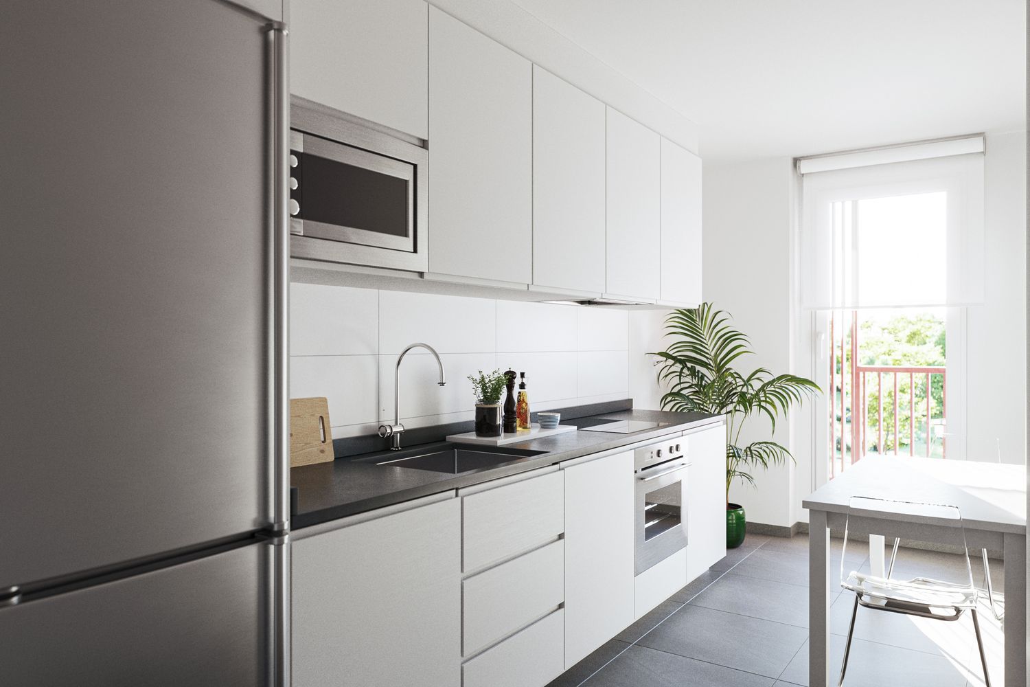 These homes are remarkable for their exceptional layouts, with clearly defined day and night zones. They feature built-in wardrobes in all bedrooms and a fully furnished kitchen equipped with high-quality appliances, including an oven, microwave, ceramic hob, and extractor hood.
