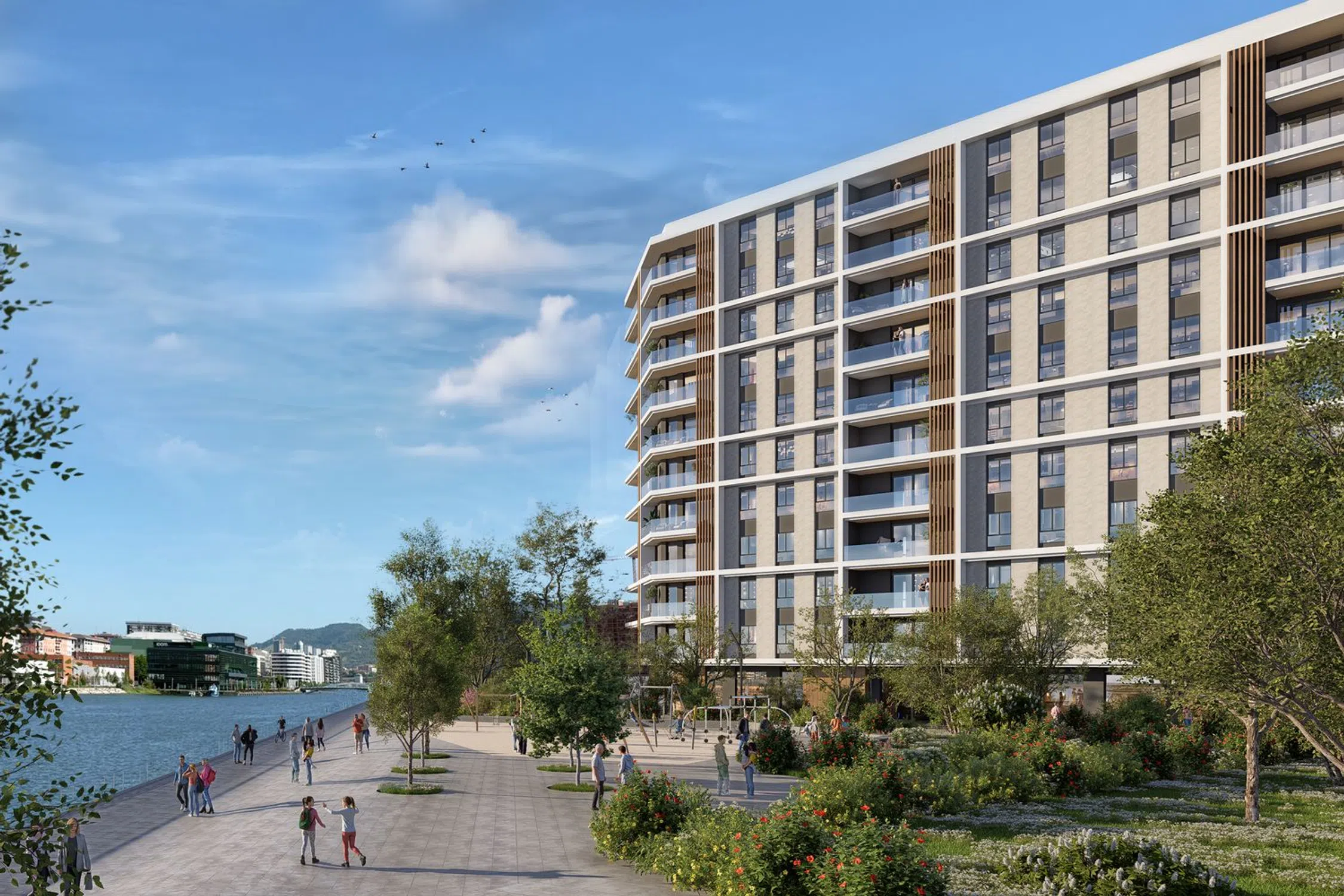 Presenting 60 new homes offering 1 to 3 bedrooms, designed to allow you to wake up in complete tranquility while being just a bridge away from everything, with views of the estuary. These residences exemplify the perfect home with unobstructed views. Imagine waking up each morning to one of the most sought-after plots on the island. Positioned opposite a beautiful park and on the front line of the Deusto Canal, nothing stands between you and the horizon. Step outside to touch green, relax with the flow of the water, and breathe contentedly knowing you’ve chosen a modern residential neighborhood crafted with top-quality materials, ensuring lifelong enjoyment.