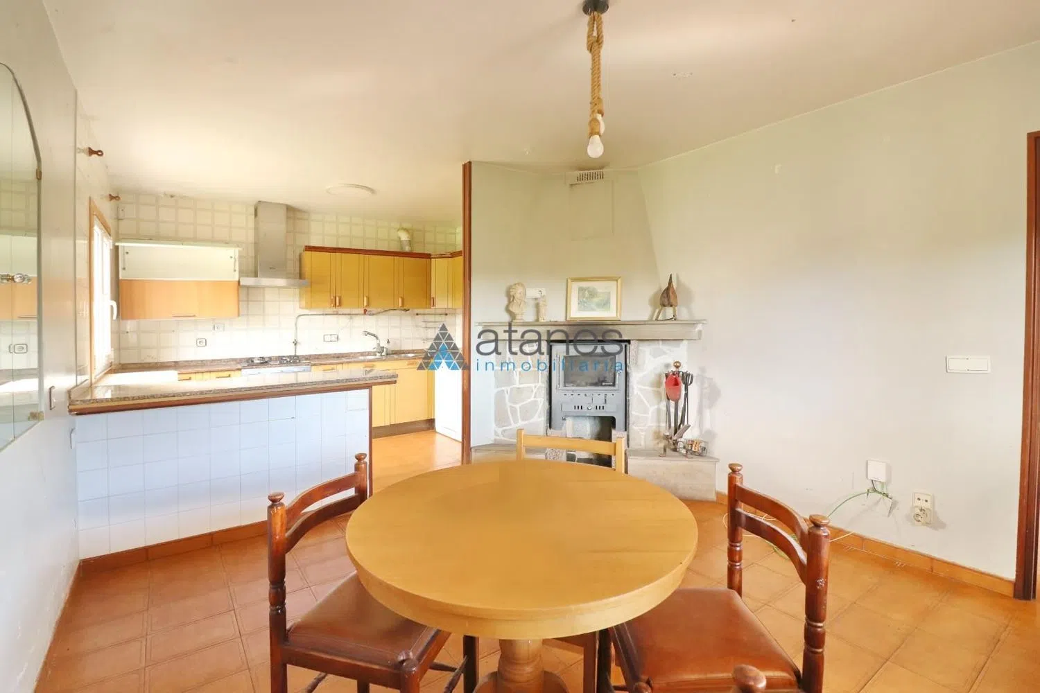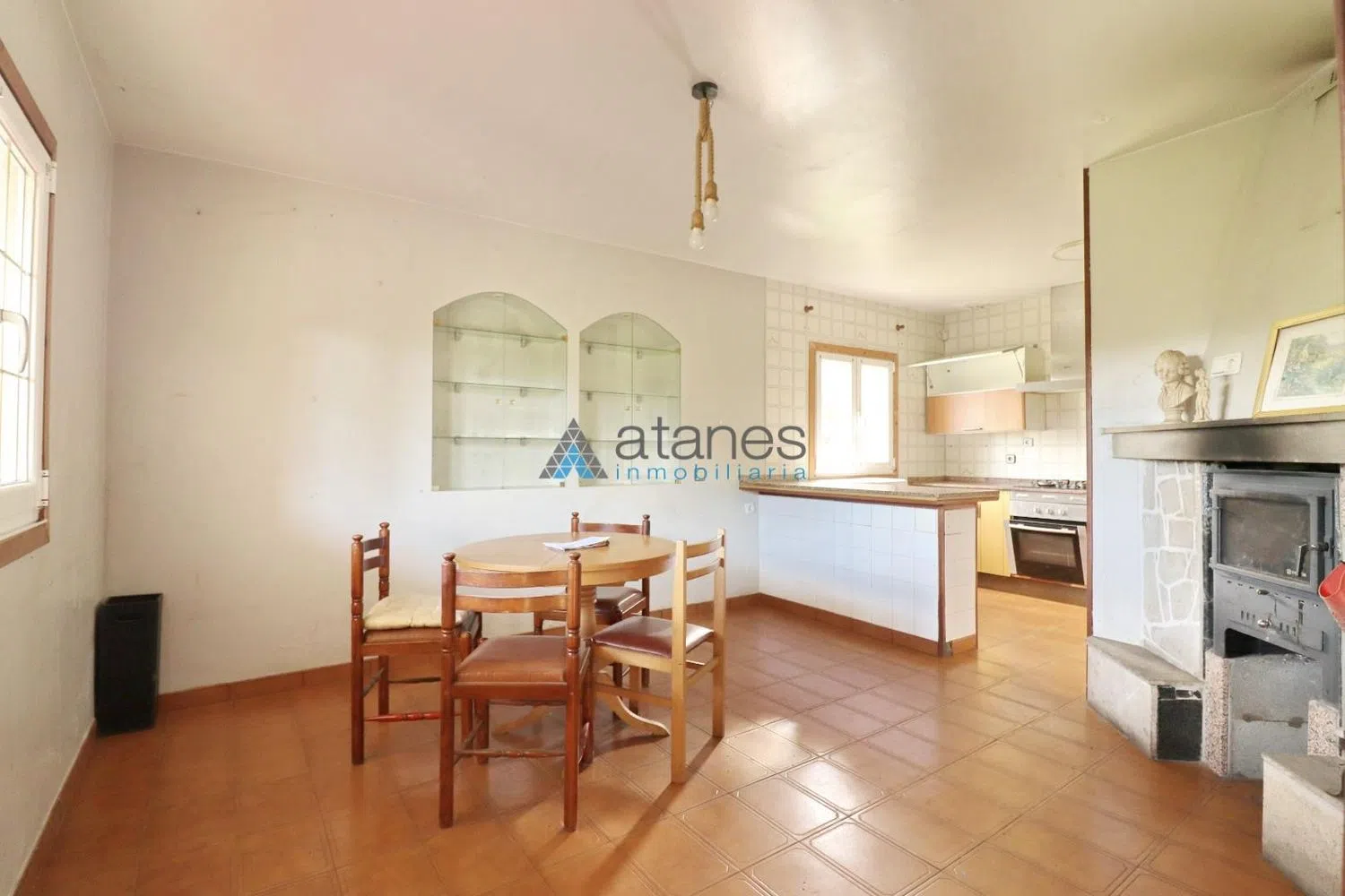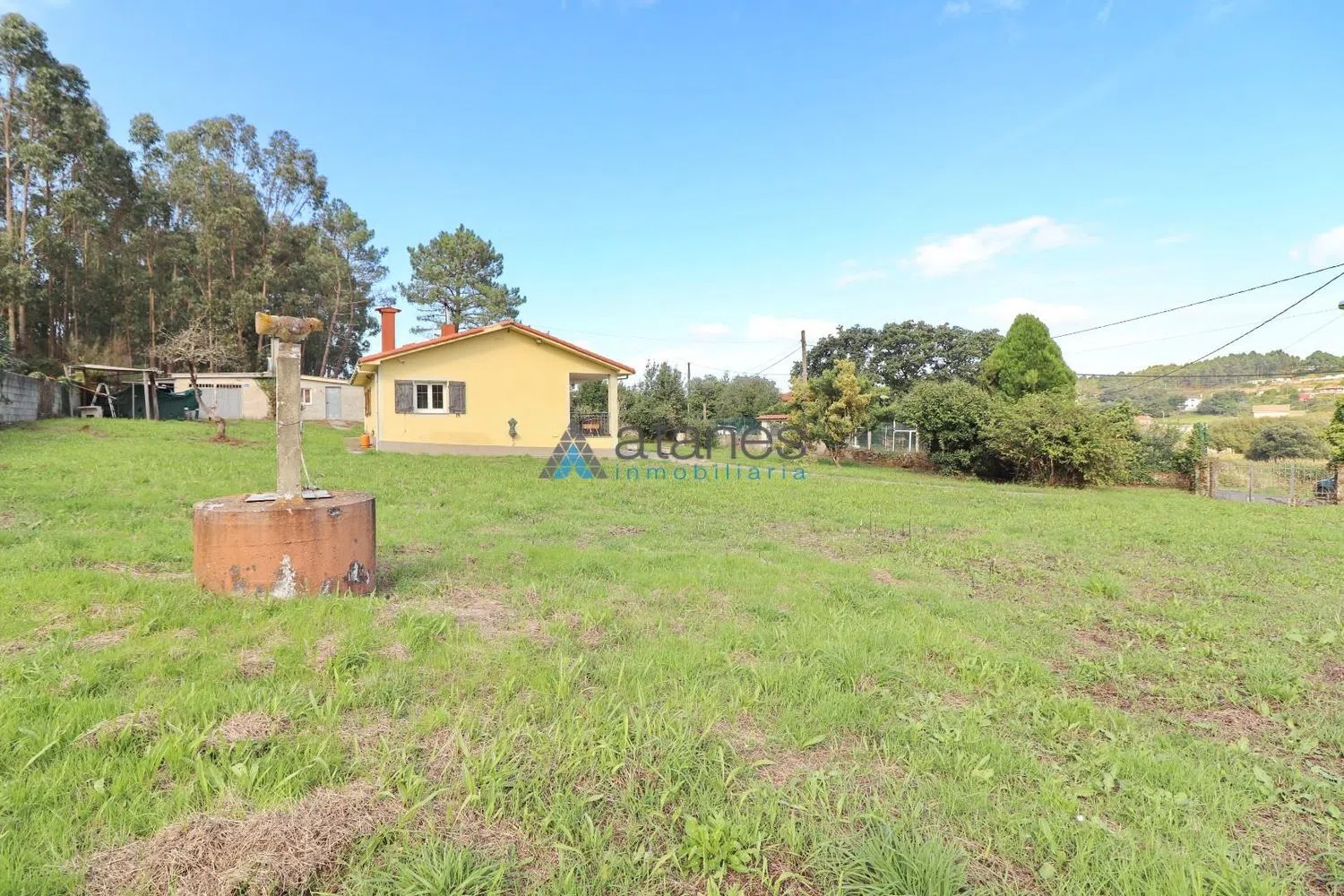 Casa en planta baja en venta en Arteixo, situada en un tranquilo lugar rodeado de zonas verdes. Una casa practica y con un amplio terreno de 2.165m² (catastro). Distribución del inmueble y terreno La vivienda cuenta con 83m² (según catastro) de superficie y se distribuye de la siguiente manera: Cocina totalmente amueblada y abierta al salón-comedor. Dos dormitorios. Dos baños completos (uno de ellos en suite del dormitorio principal). Un acogedor porche en la entrada. La vivienda cuenta también con una buhardilla con acceso mediante escalera exterior. En la finca se situada una construcción auxiliar destinada a zona de garaje, almacén y una cocina auxiliar con comedor para eventos (necesita reforma). Calidades, equipamiento y normativa Esta vivienda en Arteixo cuenta con un gran potencial. El inmueble cuenta con ventanas de aluminio y doble vidrio. Hay una chimenea calefactora de leña. La vivienda cuenta con saneamiento público, agua municipal y pozo de agua propio. Hay posibilidad de conexión de internet por fibra óptica. La finca está cerrada y según informe urbanístico del terreno, y conversación mantenida con el ayuntamiento, se puede ampliar la edificación principal si se desea. Descripción del entorno y comunicaciones Esta casa en Arteixo te ofrece una excelente comunicación por carretera con los ayuntamientos limítrofes y está muy cerca de Arteixo centro. Allí podrás disfrutar de una amplia oferta de supermercados, hostelería y parques. Además de servicios básicos como el centro médico, los colegios e institutos, farmacias y una amplia variedad de pequeños comercios. A escasos minutos tendrás el principal Área Comercial de Arteixo, con una amplia oferta de negocios y restauración. Tiene cerca el nuevo polígono de Morras y las comunicaciones con la A-6 y AG-55 son excelentes. El entorno de Arteixo es ideal para vivir ya que destaca su proximidad a la ciudad de A Coruña. Su entorno paisajístico, sus espectaculares playas y buenas comunicaciones del municipio te permitirán disfrutar de una gran calidad de vida. Precio de venta del inmueble Esta casa en Arteixo, está en a la venta por tan solo 239.000€. La zona está experimentando un fuerte desarrollo urbanístico y una creciente demanda, lo que hacen de este inmueble una gran inversión a futuro. Si tienes alguna duda o quieres ampliar información sobre esta casa en Arteixo, te invitamos a contactar con nosotros a través del formulario de nuestra web, teléfono, mail,redes sociales o WhatsApp. En definitiva, una casa en Arteixo, que en Atanes Inmobiliaria te invitamos a que conozcas. Atanes Inmobiliaria, A Coruña.