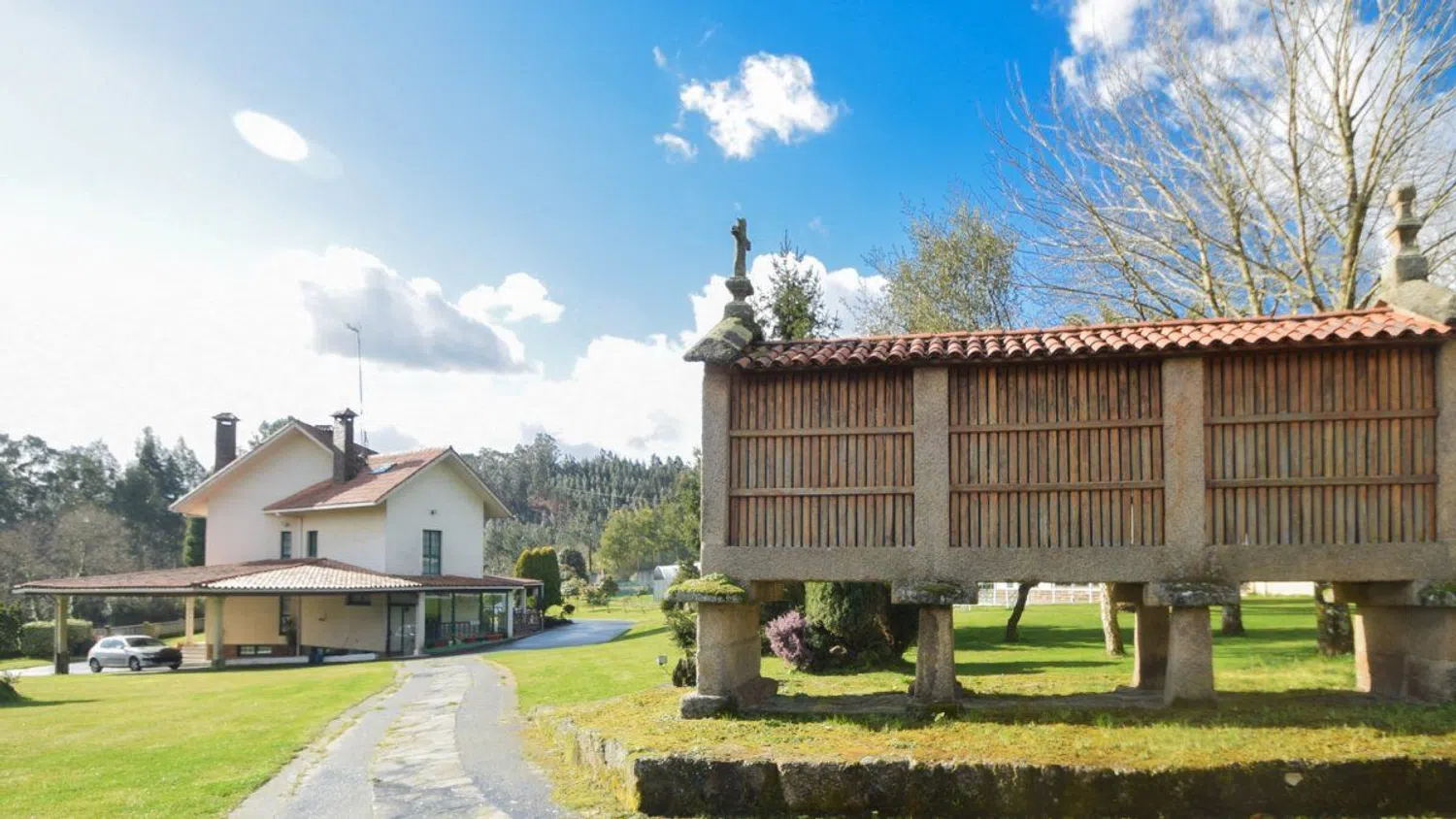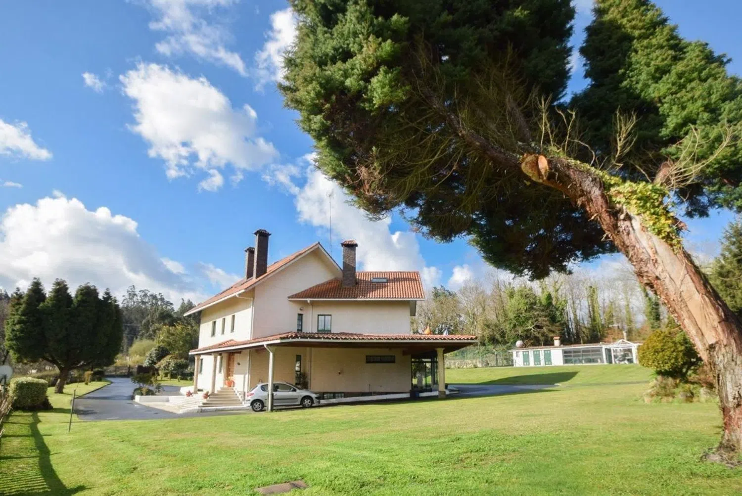 REF BD_151 Desde BACKHOME os presentamos esta IMPRESIONANTE casa de SEIS DORMITORIOS con una parcela de 4.414m² ubicada en Culleredo, en un ambiente de total tranquilidad. Esta señorial vivienda de cuatro plantas ha sido construida atendiendo a todos y cada uno de los detalles, contando con EXCELENTES calidades, tanto en la propia construcción, con doble cámara con proyección de poliuretano como en su interior, con suelos de madera y, tanto las puertas como los armarios empotrados de madera tropical MONGOI. No debemos olvidar el PERFECTO estado de conservación, apreciable tanto en sus impecables suelos de parquet como en el cuidado con el que ha sido tratado todo el mobiliario. La finca tiene acceso particular urbanizado y carretera asfaltada con alumbrado público. La propiedad se distribuye de la siguiente forma: Planta sótano: Además de un garaje cubierto, y un dormitorio, encontramos un salón con cocina, una bodega anexa y un cuarto de baño. Una zona perfecta para fiestas y reuniones familiares. Planta baja: A través del espectacular recibidor accedemos a un AMPLIO salón comedor con una impresionante chimenea, una cocina totalmente equipada, un aseo de cortesía y una zona de vestidor. Primera planta: Esta planta, diseñada como zona de noche, cuenta con cuatro dormitorios de buen tamaño, varios de ellos con ARMARIOS EMPOTRADOS, y tres cuartos de baño completos. Segunda planta: La planta bajo cubierta es un amplio espacio con una zona de despacho, un quinto y LUMINOSO dormitorio y un cuarto de baño. Todas las estancias de la vivienda cuentan con calefacción. En la zona exterior, además de un porche anexo a la vivienda, perfecto para disfrutar de los días de verano, la propiedad cuenta con una piscina vallada de GRAN TAMAÑO, un horreo perfectamente conservado de más de 200 años y un cenador con zona de barbacoa y horno de leña. Existe la posibilidad de adquirir varias parcelas anexas a la parcela en la que se ubica la vivienda, una de las cuales cuenta con una zona de garaje cubierto con un espacio diáfano con una impresionante lareira y un invernadero. Calidad, tranquilidad y amplitud son sin duda tres puntos fuertes de esta vivienda. Si valoras estos aspectos, ¡ESTA ES TU PROPIEDAD! Para más información, no dudes en contactar con nosotros.