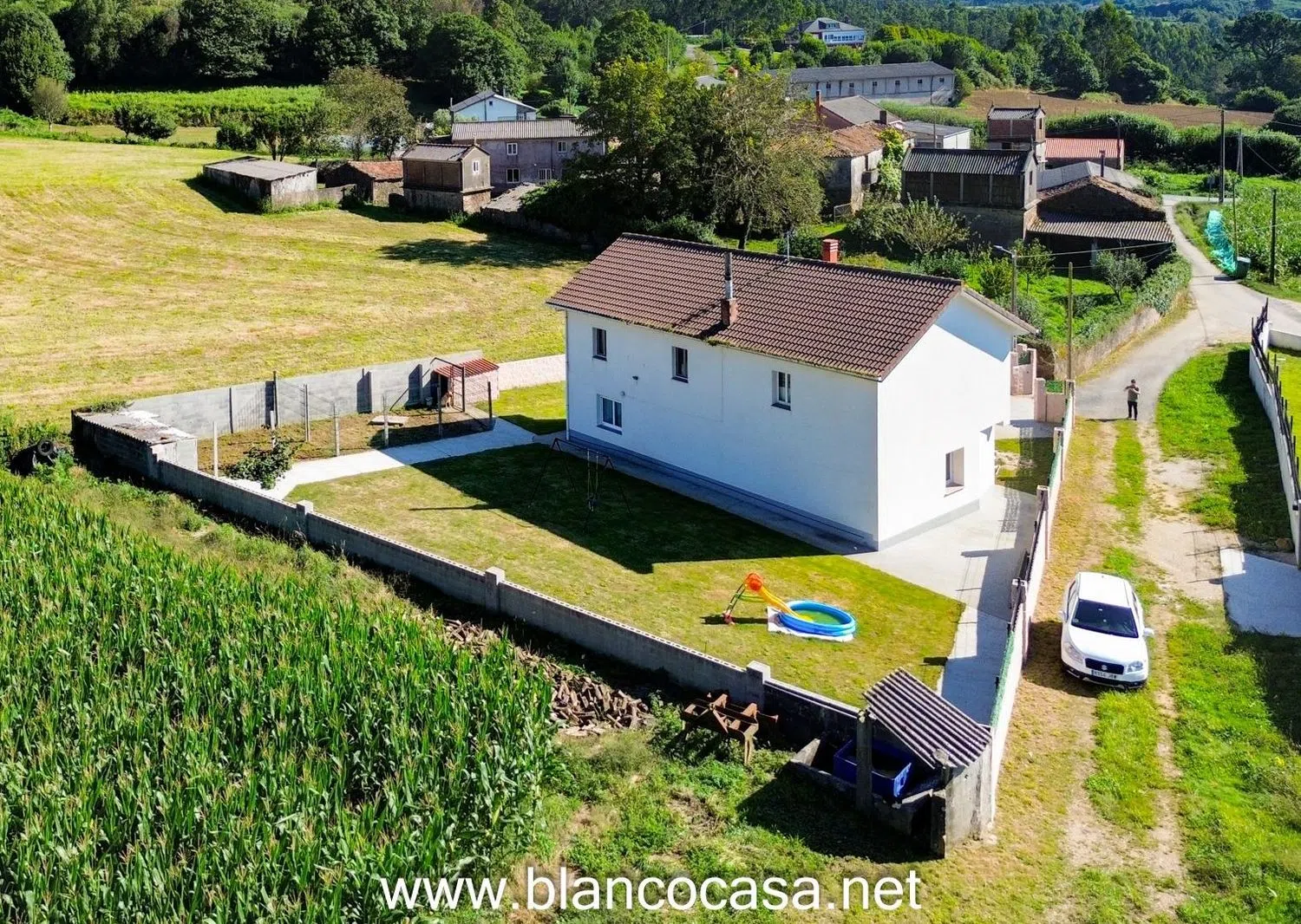 Blancocasa os presenta en exclusiva esta estupenda casa situada en la tranquila localidad de Montemaior, en el municipio de A Laracha que ofrece un entorno de vida ideal para quienes buscan la serenidad del campo sin renunciar a la cercanía con los principales centros urbanos. La propiedad, con una superficie construida de 197 m², se encuentra enclavada en un terreno amplio de 880 m² completamente cerrado con un muro de bloque, lo que garantiza privacidad y seguridad. Además, la casa cuenta con varias estancias exteriores adicionales, como alpendres destinados a garaje y almacenamiento, que la hacen aún más funcional. -En la planta baja, la vivienda cuenta con una espaciosa cocina de 17 m² totalmente equipada, que se complementa con una práctica despensa de 3 m², ideal para organizar y almacenar alimentos y utensilios. El amplio salón de 27 m², que destaca por su chimenea, se presenta como un espacio perfecto para reuniones familiares y momentos de relax en un ambiente acogedor. En esta misma planta, también se encuentra un dormitorio de 11 m² que puede ser utilizado como habitación de invitados o despacho, un baño con ducha de 5 m² y un trastero de 8 m² que proporciona un valioso espacio de almacenamiento. -La planta superior se distribuye en tres dormitorios adicionales. El dormitorio principal, con 12 m², ofrece un espacio cómodo y bien iluminado, ideal para descansar y disfrutar de privacidad. Los otros dos dormitorios, de 10 y 8 m² respectivamente, son perfectos para los miembros de la familia o para crear un espacio de oficina o estudio. Además, esta planta cuenta con un baño completo, proporcionando comodidad y funcionalidad a la vivienda. En esta planta también se ha aprovechado un espacio adicional de 36 m², que actualmente se utiliza como área de almacenamiento, pero que tiene un gran potencial para adaptarse a diversos usos según las necesidades del comprador. El terreno que rodea la casa, con sus 880 m², ofrece numerosas posibilidades para disfrutar del aire libre, ya sea creando un jardín, instalando una zona de juegos o incluso construyendo una piscina. La propiedad también incluye alpendres destinados a garaje y almacenamiento, lo que la hace especialmente atractiva para aquellos que necesitan espacio adicional para vehículos o herramientas. La ubicación de la casa es un gran punto a su favor, ya que se encuentra a solo 7,7 km del centro de A Laracha, lo que permite disfrutar de la tranquilidad del entorno rural sin alejarse demasiado de los servicios y comercios. Además, la proximidad a Carballo, a 14 km, y a la ciudad de A Coruña, a 27 km, facilita el acceso a una oferta más amplia de servicios y actividades. Para los amantes de la playa, la hermosa costa de Caión se encuentra a solo 19 km, convirtiéndose en un destino ideal para disfrutar del mar y el entorno natural. Esta propiedad es perfecta para aquellos que buscan un hogar amplio y versátil, con numerosas posibilidades de personalización, en un entorno tranquilo pero bien conectado con los principales núcleos urbanos de la región. Con todas las comodidades distribuidas en dos plantas y un terreno exterior generoso, esta casa en Montemaior es una oportunidad única que no querrás dejar escapar. Precio:229.900€ Además este precio incluye un monte cercano a la vivienda de 4000m2. Más info en *Los datos expuestos en este anuncio son ofrecidos por terceros, meramente informativos y no contractuales y se suponen correctos. Blancocasa Gestión de Activos, S.L.U. no garantiza su veracidad. La oferta se sujeta a errores, cambios de precio, omisión y / o retirada del mercado sin aviso previo.
