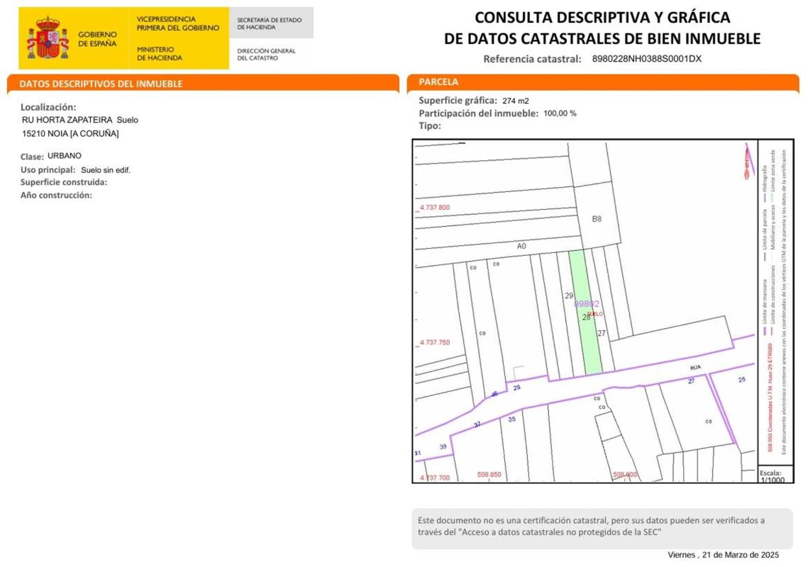 España Urbano España Urbano A Coruña Urbano Noia Terreno en calle Zapateira, 27