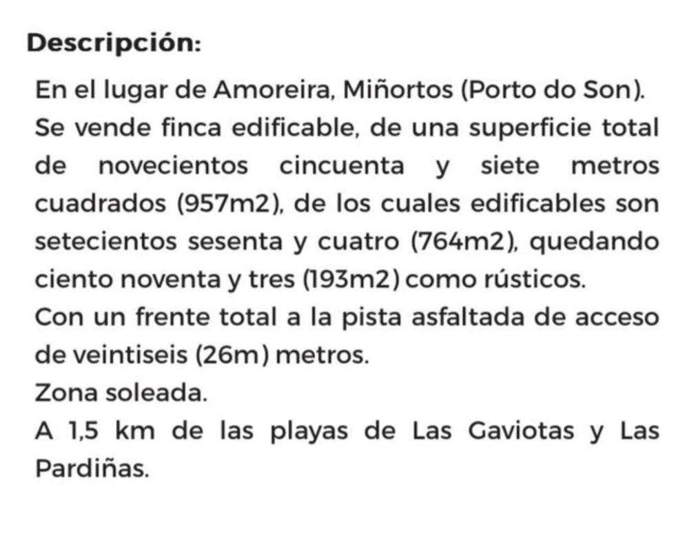 Terreno miñortos portosin porto do son.