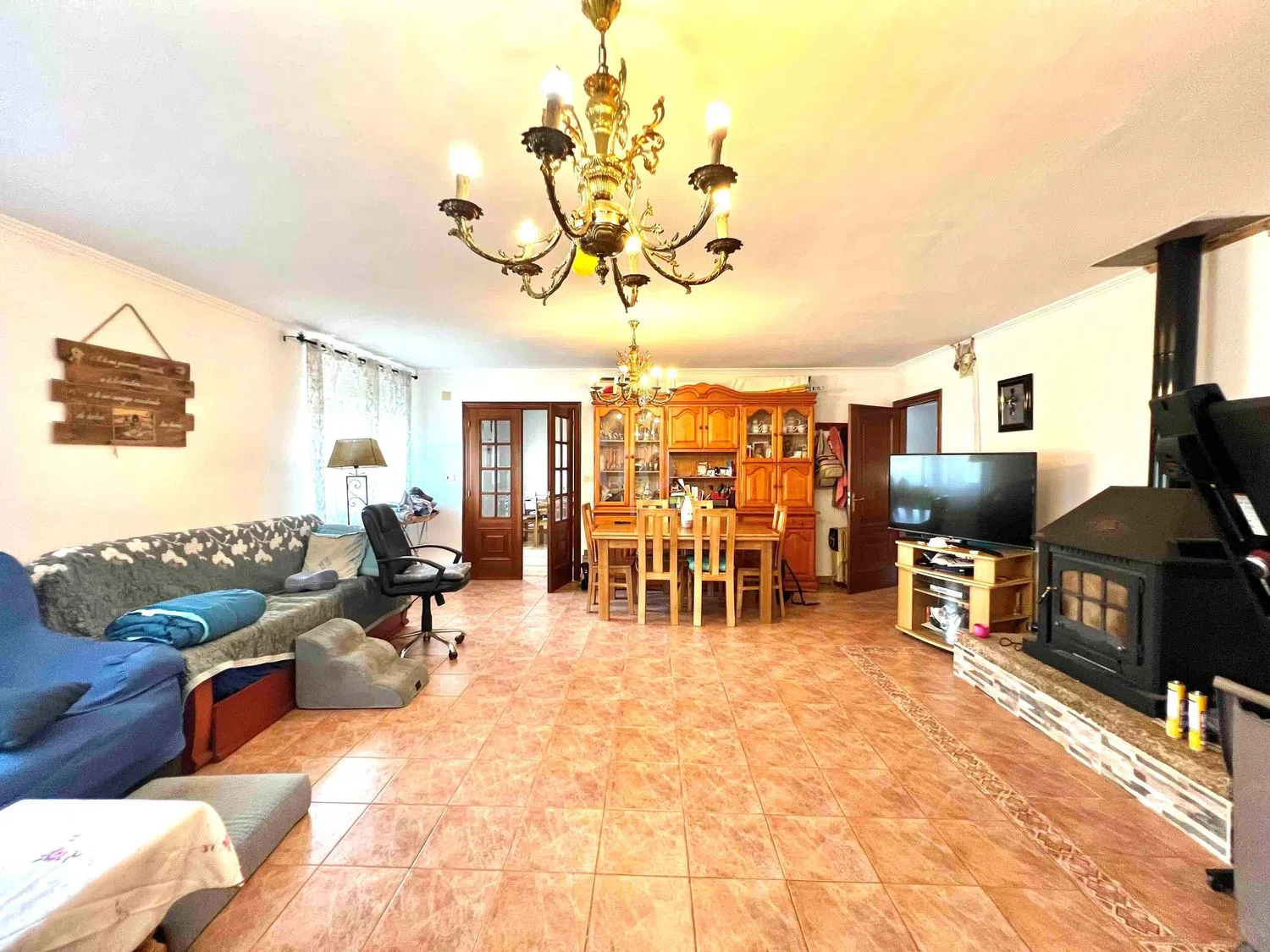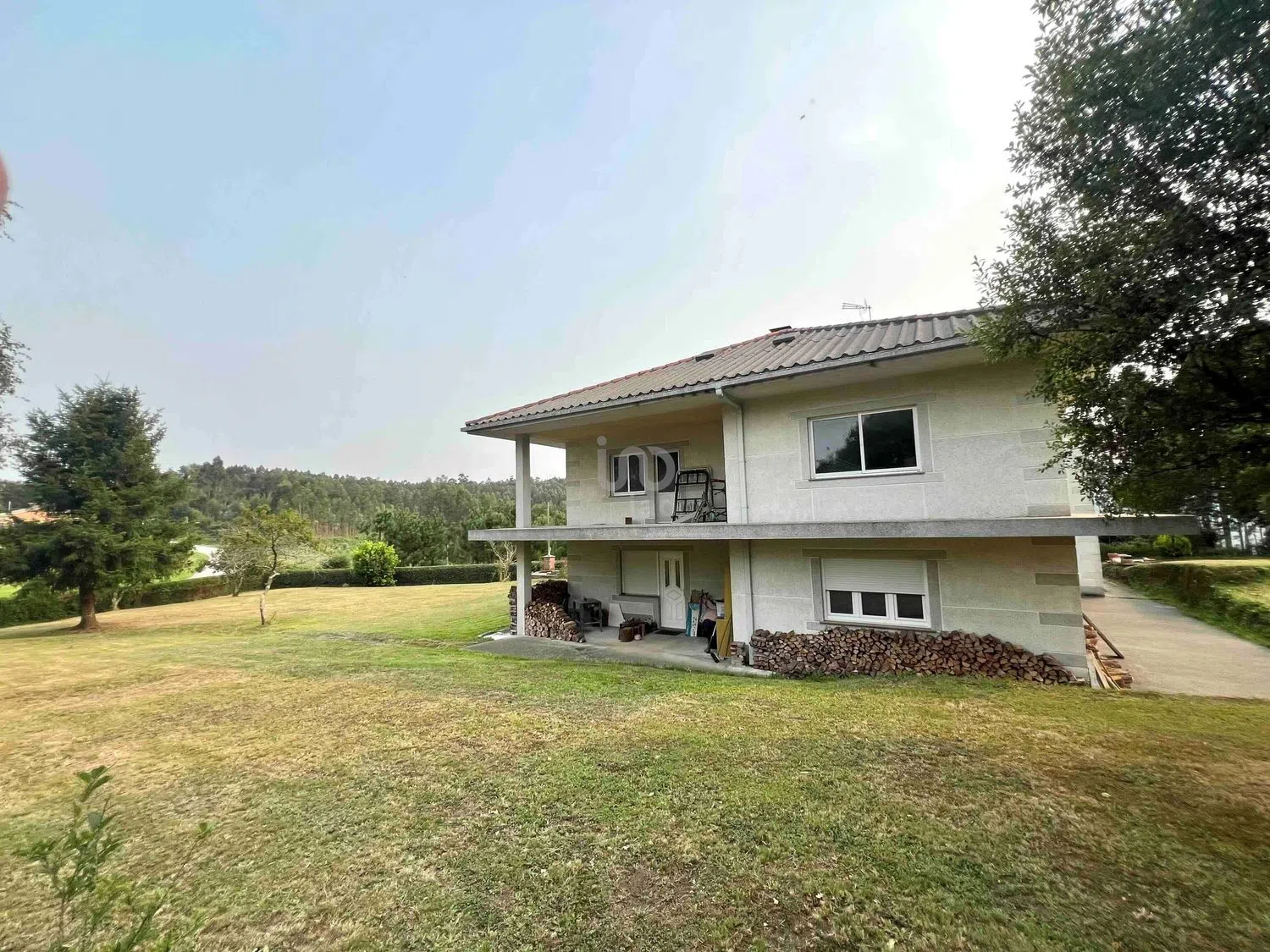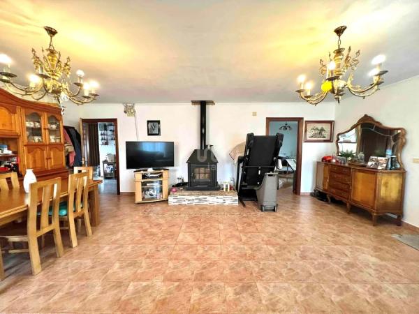 Imagina una casa grande situada en una zona tranquila, rodeada de naturaleza y un amplio terreno que ofrece un ambiente de paz y privacidad. Al acercarte, ves una construcción sólida de una sola planta principal, con una fachada sencilla pero acogedora, de colores neutros y ventanales amplios que dejan entrar mucha luz natural. Al entrar, te encuentras con un **salón espacioso**, de techos altos y con ventanas grandes que dan vista al enorme terreno alrededor. La decoración es sencilla pero funcional, con muebles cómodos, tal vez un sofá amplio y una mesa de centro moderna. El salón conecta con una **cocina independiente**, equipada con todos los electrodomésticos necesarios. Es un espacio bien diseñado, con encimeras amplias, una isla en el centro, y armarios de madera que brindan un toque cálido al espacio. Desde el pasillo, se accede a dos **habitaciones grandes**. La primera es luminosa, perfecta como dormitorio principal, mientras que la segunda puede usarse como habitación de invitados o de trabajo, también con buena iluminación y vistas al exterior. A lo largo del pasillo se encuentra el **primer baño**, equipado con una ducha moderna y acabados sencillos pero elegantes. El **garaje** es amplio, con espacio para varios vehículos, y contiene el **segundo baño**, que es más práctico, ideal para cuando se realizan actividades al aire libre o para visitas rápidas. La casa también tiene una **segunda planta diáfana**, completamente abierta y aún sin terminar, lo que ofrece muchas posibilidades. Se podría convertir en una zona de juegos, estudio, gimnasio o incluso en más habitaciones, según las necesidades. La sensación de espacio es abrumadora, y las vigas expuestas y techos altos le dan un aire de amplitud. El **terreno que rodea la casa es enorme**, perfecto para crear un jardín, huerto o incluso una zona de recreo. Podrías imaginar una barbacoa al aire libre o incluso un pequeño estanque o piscina. Al estar en una zona tan tranquila, este espacio exterior es un verdadero lujo para disfrutar de la naturaleza sin distracciones. En conjunto, es una casa funcional, acogedora y llena de posibilidades, tanto por el espacio interior como por las oportunidades que brinda su enorme terreno.