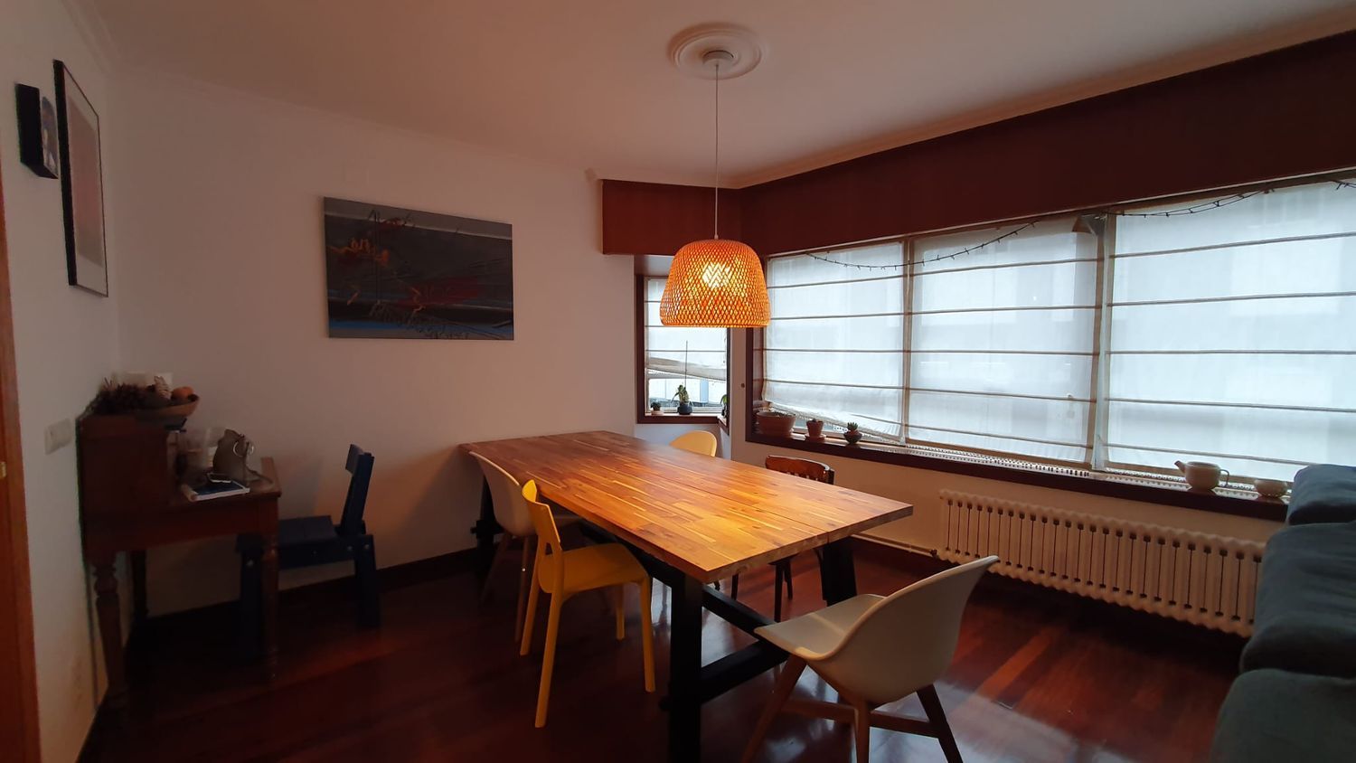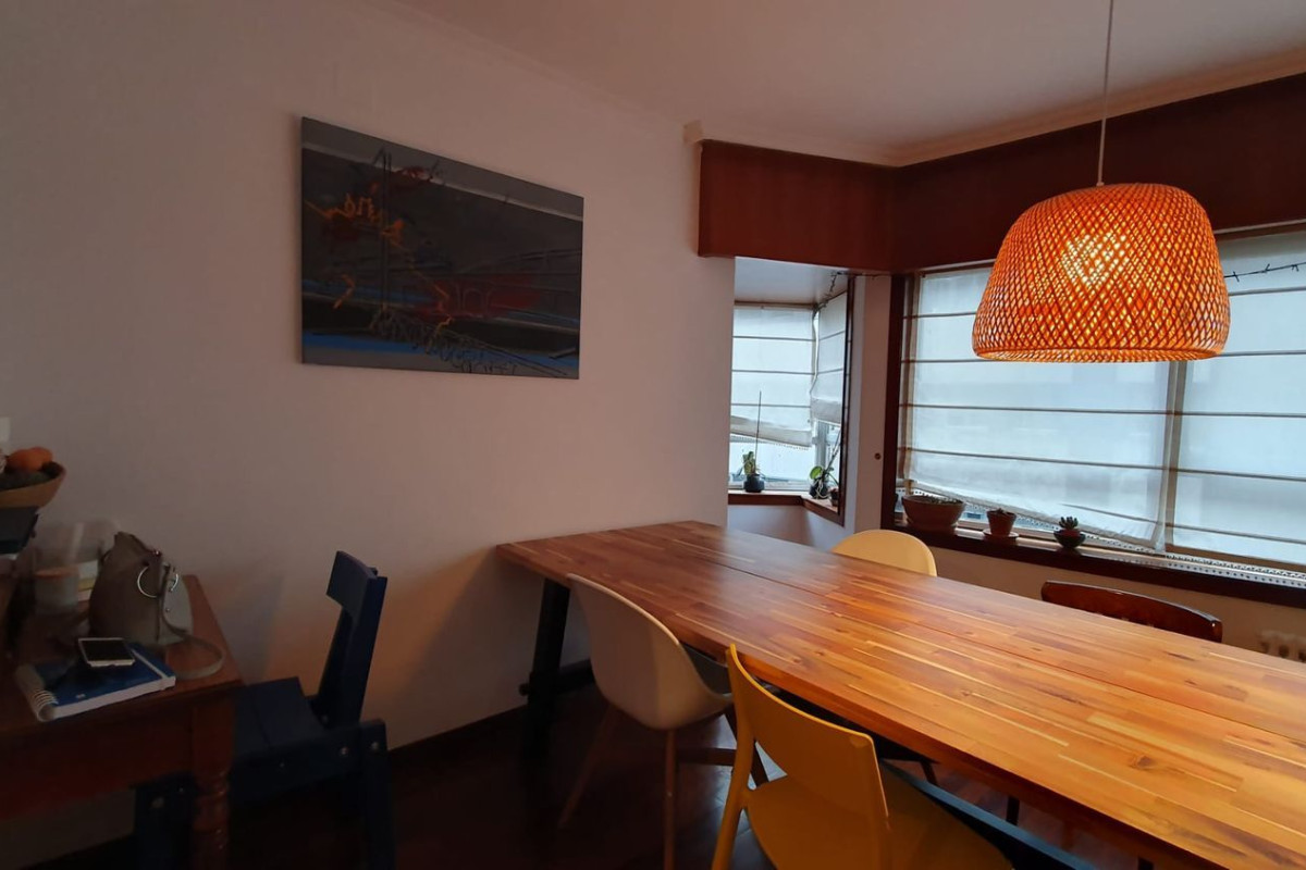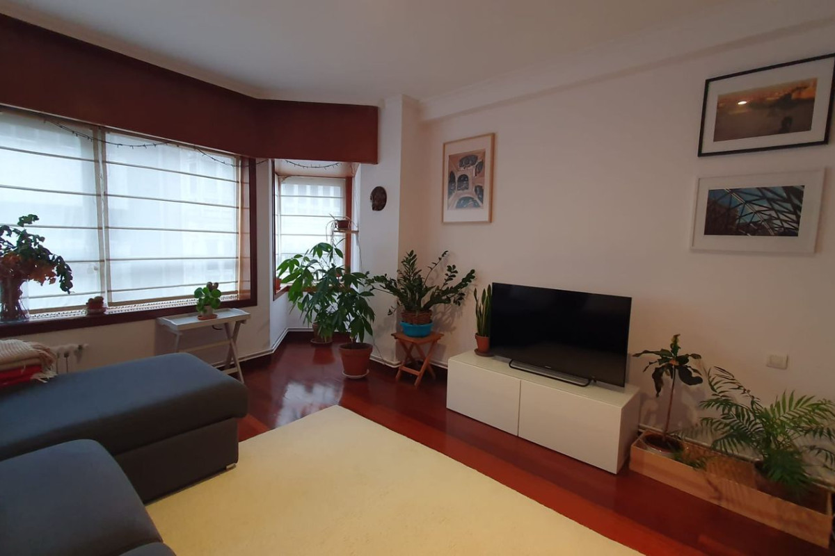 Vende piso en el ensanche de Santiago de COmpostela. El piso consta de Salon comedor con gran ventanal a la calle, 4 habitaciones, tres baños y cocina con tendal. En el precio del inmueble se incluye la plaza de garaje. El sistema de calefaccion es central a gasoleo con contador individual al igual que el agua corriente sanitaria. Tiene una comunidad de unos 100 euros mesuales. Más información llamar al teléfono.