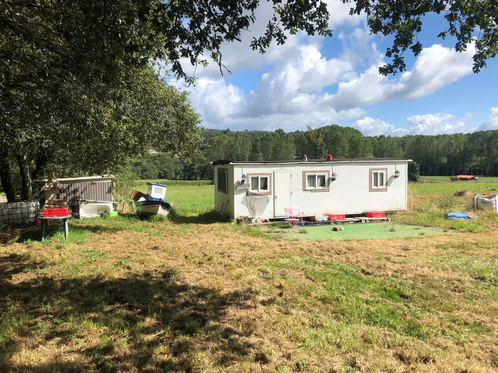 se venden 2 fincas edificables con agua de pozo, fosa septica, separador de grasas y luz dispone de una casita prefabricada (para restaurar) y un cobertizo para herramientas. las fincas estan a 10 min de santiago y a 300 m del pazo de xan xordo. zona muy tranquila.