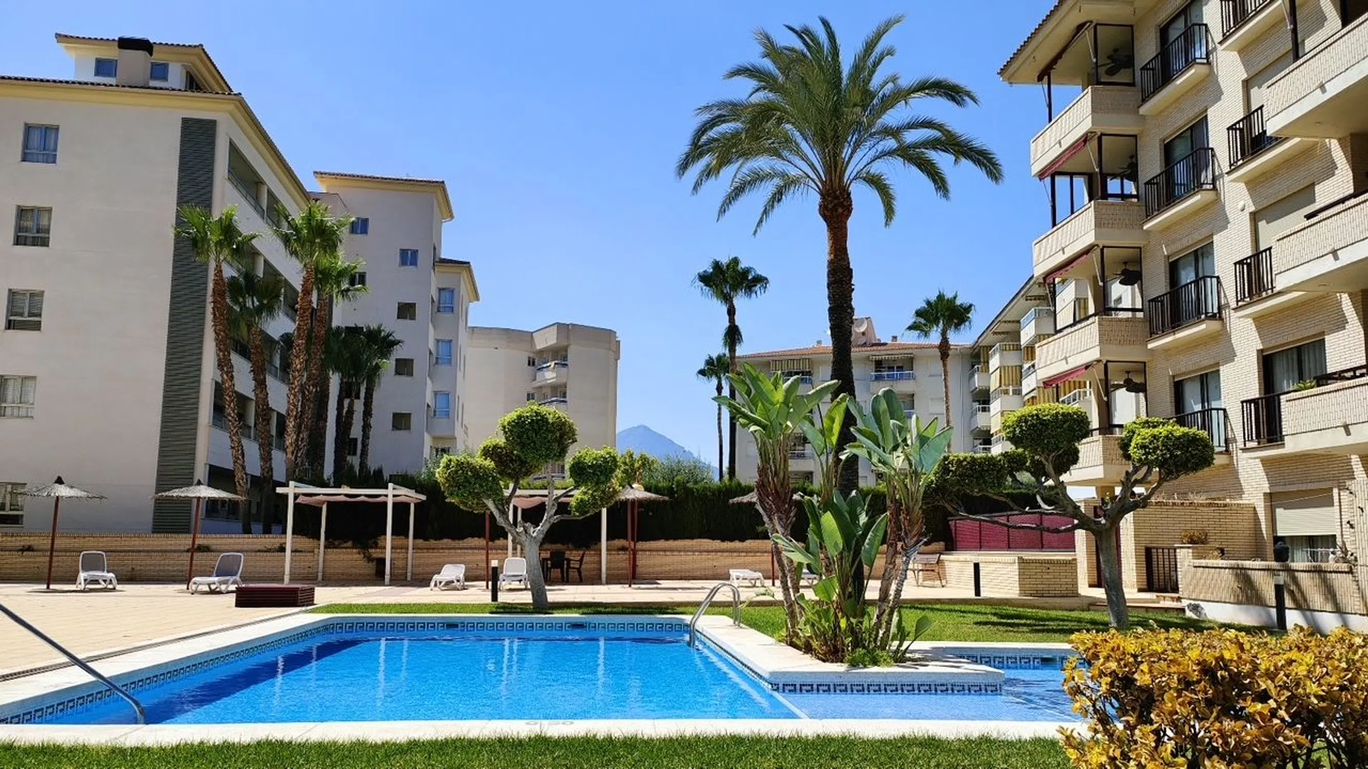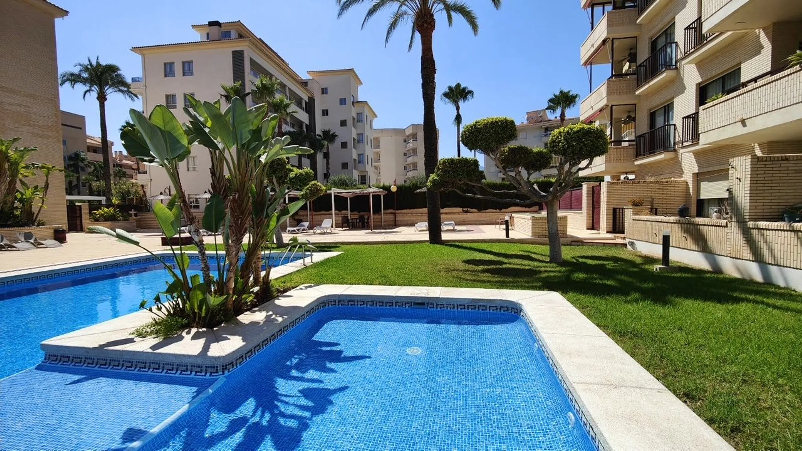 Encantador piso de planta baja con terraza de 27 metros y jardín privado. Ubicado en una de las zonas más exclusivas de la Costa Blanca, muy cerca del paseo marítimo y de todos los servicios que ofrece la zona. Se encuentra en una comunidad que cuenta con bonitas zonas comunes ajardinadas y piscina comunitaria. El piso tiene una superficie construida de 67 metros y tiene dos dormitorios con armarios empotrados y un baño completo con acabados y materiales de primera calidad. Un espacioso salón comedor con luz natural y acceso directo a la gran terraza con barbacoa y jardín privado de 55 metros. La cocina que esta completamente equipada y diseñada con un estilo funcional.