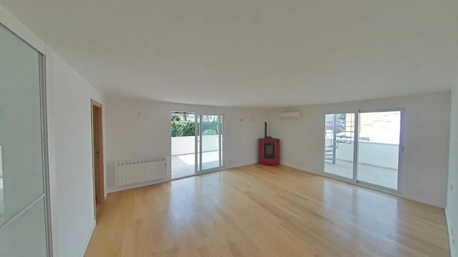 Accediendo a través de una escalera en espiral, el solárium es el lugar ideal para relajarte y disfrutar de impresionantes vistas panorámicas. Además, la propiedad cuenta con dos espacios de aparcamiento, lo que añade un toque de conveniencia. Cada habitación está equipada con aire acondicionado, y tanto el salón como el dormitorio principal disponen de chimenea, creando un ambiente acogedor en cualquier época del año.