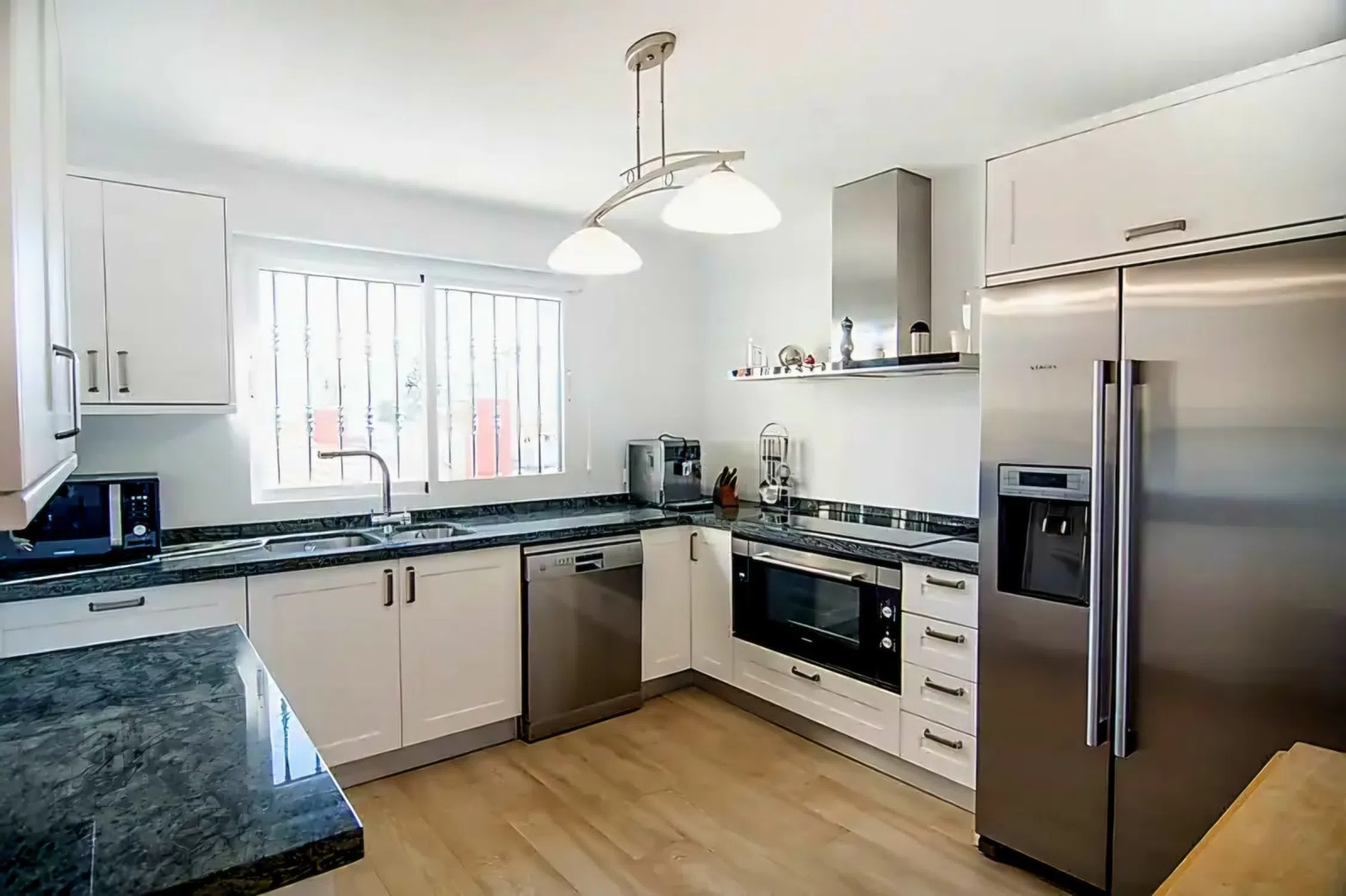 Fabulosa casa familiar grande de 9 habitaciones y 7 baños Presentamos una propiedad muy espaciosa distribuida en tres plantas con ascensor, casa de invitados junto a la piscina y totalmente adaptada para personas con movilidad reducida. La casa se encuentra en una parcela segura de más de 1000m2 con jardin, césped y una gran piscina familiar. La planta principal cuenta con un amplio recibidor, un trastero junto a la moderna cocina totalmente equipada y un amplio salón con amplios ventanales que dan a una terraza cubierta con fabulosas vistas a la montaña. Encontrará dos amplios dormitorios dobles con dos baños completos. En la planta superior de la propiedad se encuentra el dormitorio principal con vestidor, amplio baño con ducha de hidromasaje y bañera de hidromasaje y acceso a otra gran terraza con impresionantes vistas panorámicas a la montaña. El nivel bajo ofrece otra cocina totalmente equipada, un luminoso comedor y una gran sala de estar, así como otros cuatro dormitorios dobles, tres baños equipados con duchas de alta presión y acceso directo e independiente a la hermosa piscina y al jardín. La casa está equipada con un sistema de alarma y videovigilancia de última generación, calefacción central y suelo radiante en la planta baja, placas solares, domótica y sistemas de filtración de agua con depósitos de agua filtrada para consumo y depósito de agua de lluvia para riego y una gran bodega. Amplia entrada con espacio para varios coche y cochera cubierta. Junto a la zona de la piscina hay una casa de invitados independiente con cocina, salón y dos dormitorios y un baño completo. Se trata de una parcela muy privada, rodeada de terrazas y un jardín mediterráneo de fácil mantenimiento con sistema de riego automatizado, árboles frutales de naranjos y limoneros y una valla perimetral con cipreses. Este apartamento está convenientemente ubicado en una popular zona residencial para familias y profesionales, a solo unos minutos a pie del centro de Alfaz del Pi y cerca del Albir. Cuenta con todos los servicios, como colegios internacionales, autobuses y estación de tren. Playa Albir está a solo 5 minutos en coche y a 8 minutos de Altea y Benidorm. El aeropuerto de Alicante está a solo 40 minutos en coche. Una propiedad excepcional, lista para entrar a vivir. Contáctenos para visitar esta fabulosa villa independiente española.