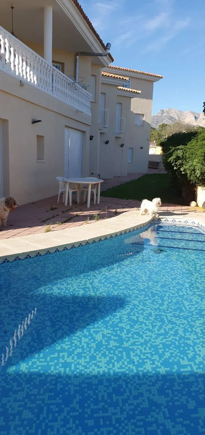 Este magnífico chalet de 300m² de superficie combina el encanto de las fachadas mediterráneas con un diseño interior moderno. Dispone de 4 amplios dormitorios, 4 baños completos, una gran terraza y un jardín privado perfecto para disfrutar del clima soleado de la Costa Blanca. Los suelos de madera, los espacios abiertos y luminosos y las vistas espectaculares a las montañas hacen de esta vivienda un lugar único y acogedor. Además, cuenta con un amplio garaje privado y un trastero, brindando comodidad y funcionalidad adicionales. Dispone de piscina comunitaria y barbacoa. Ubicado en la tranquila zona residencial de Alfaz del Pi, este chalet es ideal tanto como vivienda familiar como residencia vacacional. La localidad ofrece una combinación perfecta de tranquilidad y proximidad a servicios esenciales, como supermercados, colegios y centros médicos. En las cercanías podrás disfrutar de playas de ensueño como Albir y Altea, explorar las rutas de senderismo del Parque Natural de Sierra Helada o deleitarte con la variada gastronomía local. Alfaz del Pi también cuenta con una rica vida cultural y festividades tradicionales, así como actividades deportivas al aire libre. Un lugar perfecto para disfrutar del estilo de vida mediterráneo.