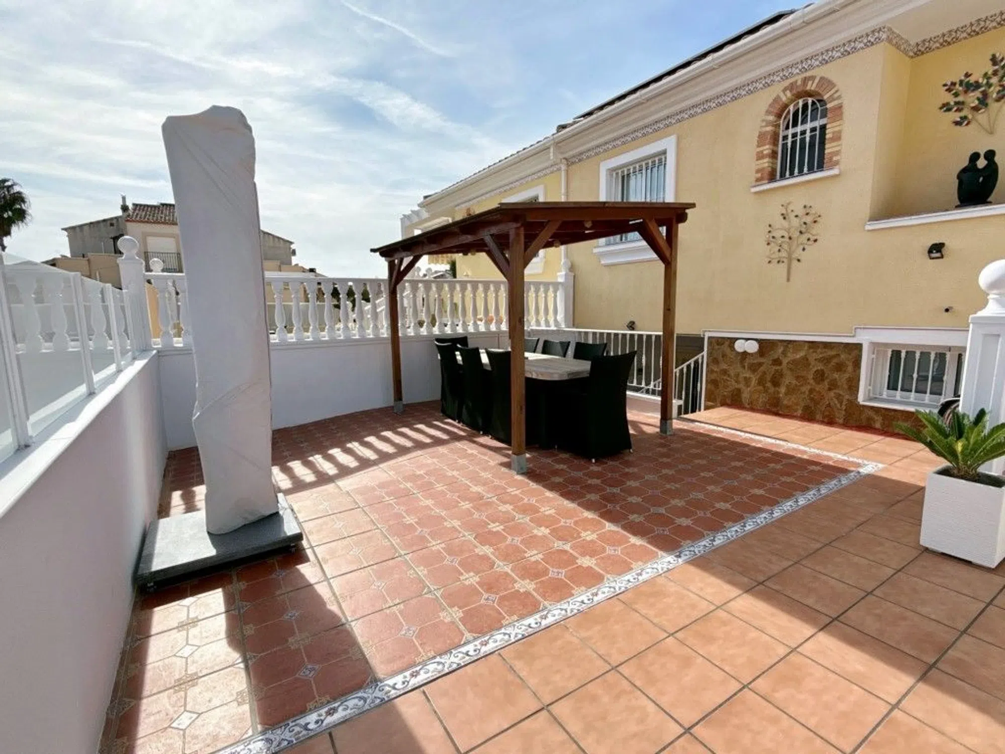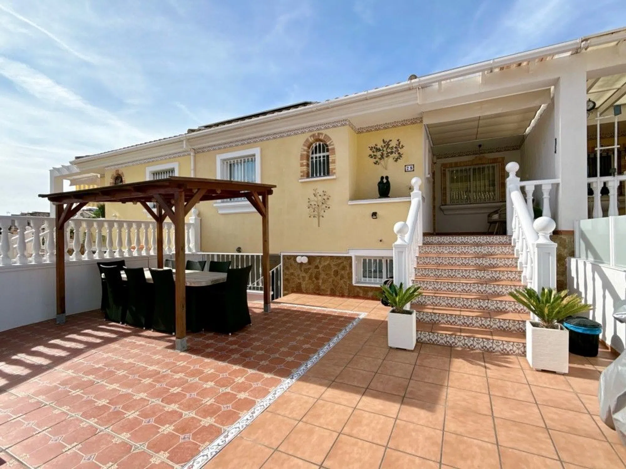 ¿Sueña con vivir bajo el sol español en una casa completamente reformada y lista para entrar a vivir? ¡Entonces esta excepcional propiedad en la popular Lo Crispin (Algorfa) es su pareja perfecta! Completamente Reformada: Esta propiedad ha sido renovada con atención al detalle y de acuerdo con los últimos estándares (¡incluidos paneles solares! ). Usted está comprando comodidad y sostenibilidad sin preocupaciones. Espacio y Luz en la Planta Principal: La casa principal cuenta con una amplia y luminosa sala de estar con una moderna cocina abierta, dos cómodos dormitorios y dos elegantes baños. Vida Exterior Máxima: Disfrute del sol en cualquier momento del día en una de las varias terrazas, el acogedor patio o la terraza de la azotea con vistas panorámicas. Apartamento de Invitados Separado: Ideal para familias grandes y para amigos. El apartamento de invitados tiene su propia sala de estar, tres dormitorios adicionales y un baño. La propiedad también incluye un trastero separado. Ubicación, Ubicación, Ubicación: Lo Crispin (Algorfa)La casa está situada en una acogedora urbanización sin tráfico con una preciosa piscina comunitaria y jardín. Lo Crispin es un barrio popular y encantador, situado justo al lado de pueblos codiciados como Benijófar y Ciudad Quesada. ¡El aeropuerto de Alicante está a solo 30 minutos en coche! ¿Le gustaría experimentar esta excepcional propiedad en persona¡Programe su visita hoy! Esto es posible 7/7 con cita previa. ¡ Contáctenos ahora para más información! Año de Construcción: 2007 Superficie Construida: 77 m² + sótano de 97 m² Terrazas: 62 m² terraza + 25 m² patio + 32 m² terraza en la azotea Piscina/Jardín Comunitario, Cuota (VvE): 35 € al mes CEE: D Impuesto sobre la Propiedad (IBI / Suma): 427 € ref: R1278.