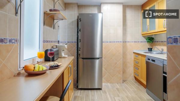 Se alquilan habitaciones en un apartamento amueblado de 5 habitaciones en la C. Valdés. El piso se encuentra en la 5.ª planta de un edificio con ascensor. Incluye cocina equipada.