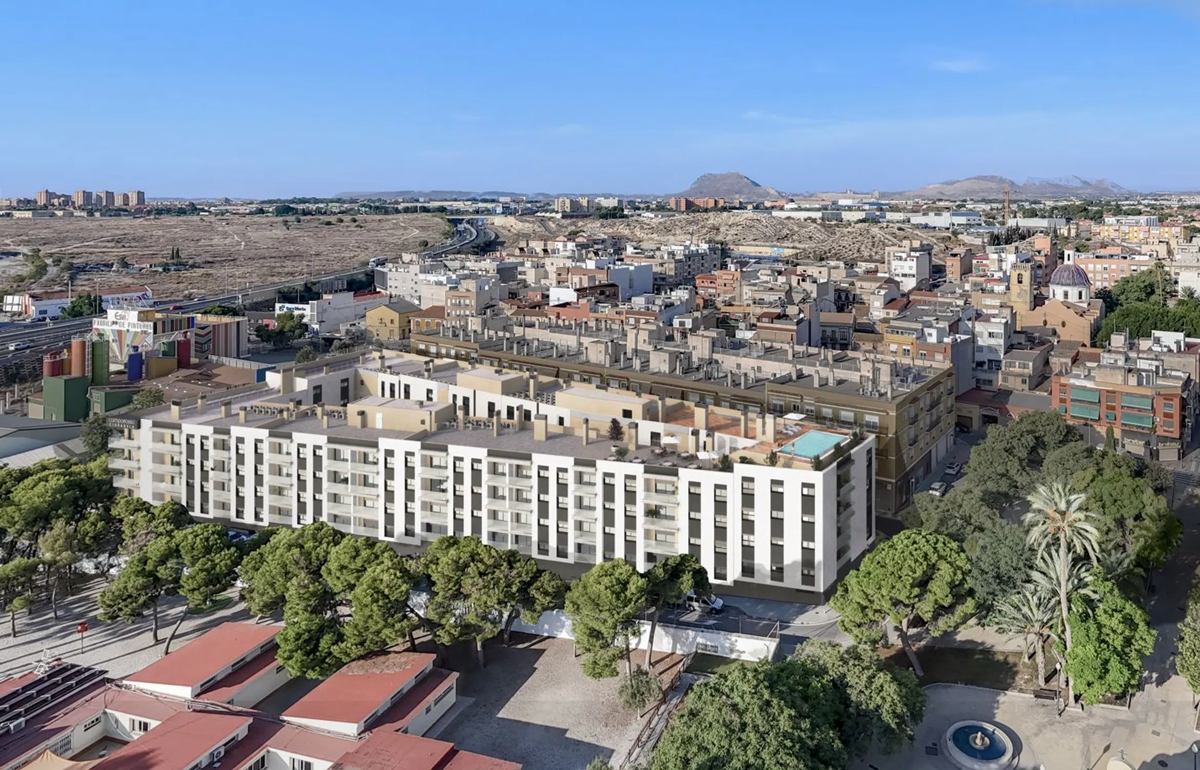 Camporrosso Ciudadela es un conjunto residencial moderno y perfectamente concebido para quienes buscan calidad, comodidad y un estilo de vida tranquilo sin renunciar a la cercanía de la ciudad. La promoción está formada por 102 viviendas de 1, 2 y 3 dormitorios, diseñadas con una distribución funcional, terrazas y una excelente orientación que garantiza espacios luminosos y cálidos durante todo el año. Todas las viviendas incluyen plaza de parking y trastero. Ubicado en Villafranqueza, uno de los núcleos más consolidados y con mayor proyección del entorno de Alicante, el conjunto disfruta de una situación privilegiada: a escasos minutos de la Universidad de Alicante y con un acceso rápido y directo a las principales vías de comunicación, como la A-70 y la A-77. Esta conectividad permite desplazarse en pocos minutos al centro de la ciudad, a centros comerciales, servicios esenciales, colegios, instalaciones deportivas y transporte público. La zona destaca por su tranquilidad, su ambiente familiar y su equilibrio perfecto entre vida urbana y serenidad residencial. La arquitectura del proyecto combina líneas contemporáneas con materiales de calidad que aportan elegancia, durabilidad y una estética actual. Los espacios comunes están cuidadosamente diseñados para crear entornos agradables y funcionales, entre los que destaca la espectacular piscina panorámica situada en la cubierta del edificio. Un espacio único donde disfrutar del sol, relajarse, admirar las vistas abiertas y compartir momentos inolvidables. Además, la promoción cuenta con zonas de estancia, áreas ajardinadas y accesos amplios que facilitan la movilidad y el confort. Un proyecto completo, bien comunicado y con un diseño contemporáneo, creado para disfrutar del auténtico estilo de vida mediterráneo. TU CASA, TU VIDA. Oficina de ventas abierta de lunes a viernes de 10:00 a 14:00h y de 15:00 a 18:00h, los sábados con cita previa. Situada a 150 m de la promoción: Calle Musico José Torregrosa nº6, 03112 Villafranqueza, Alicante.