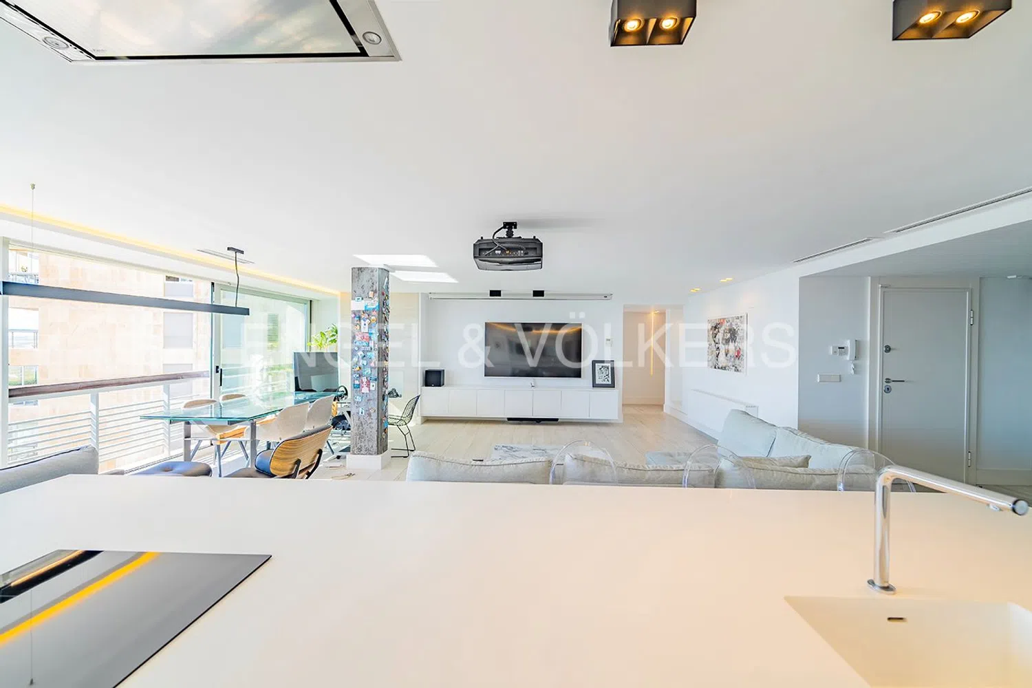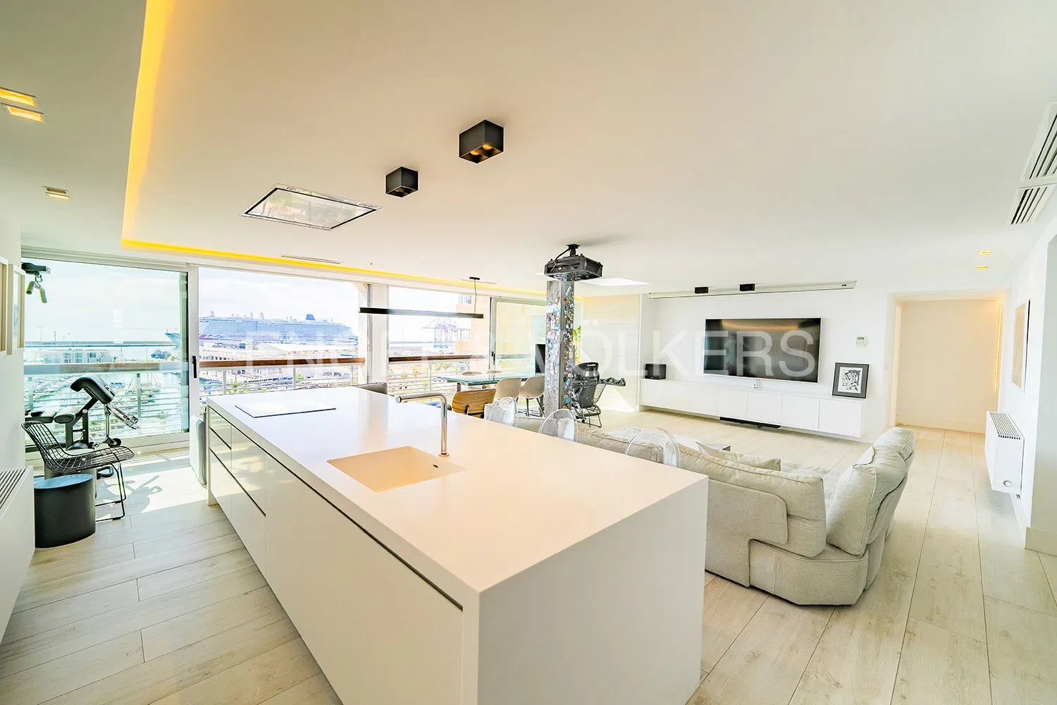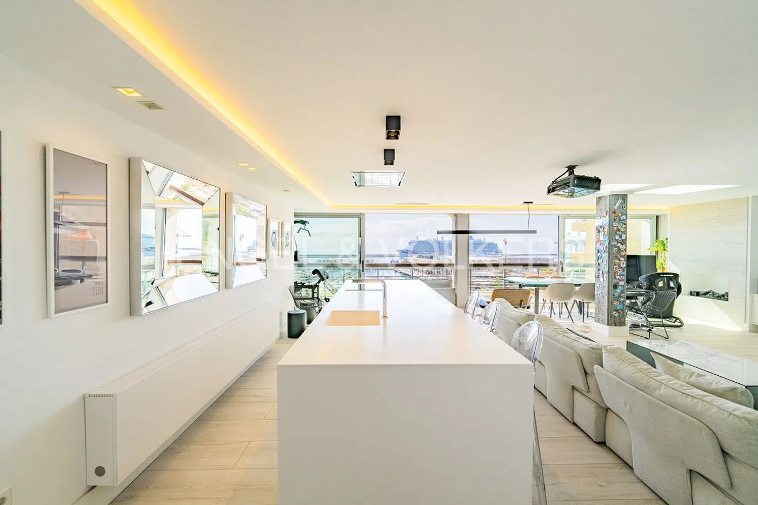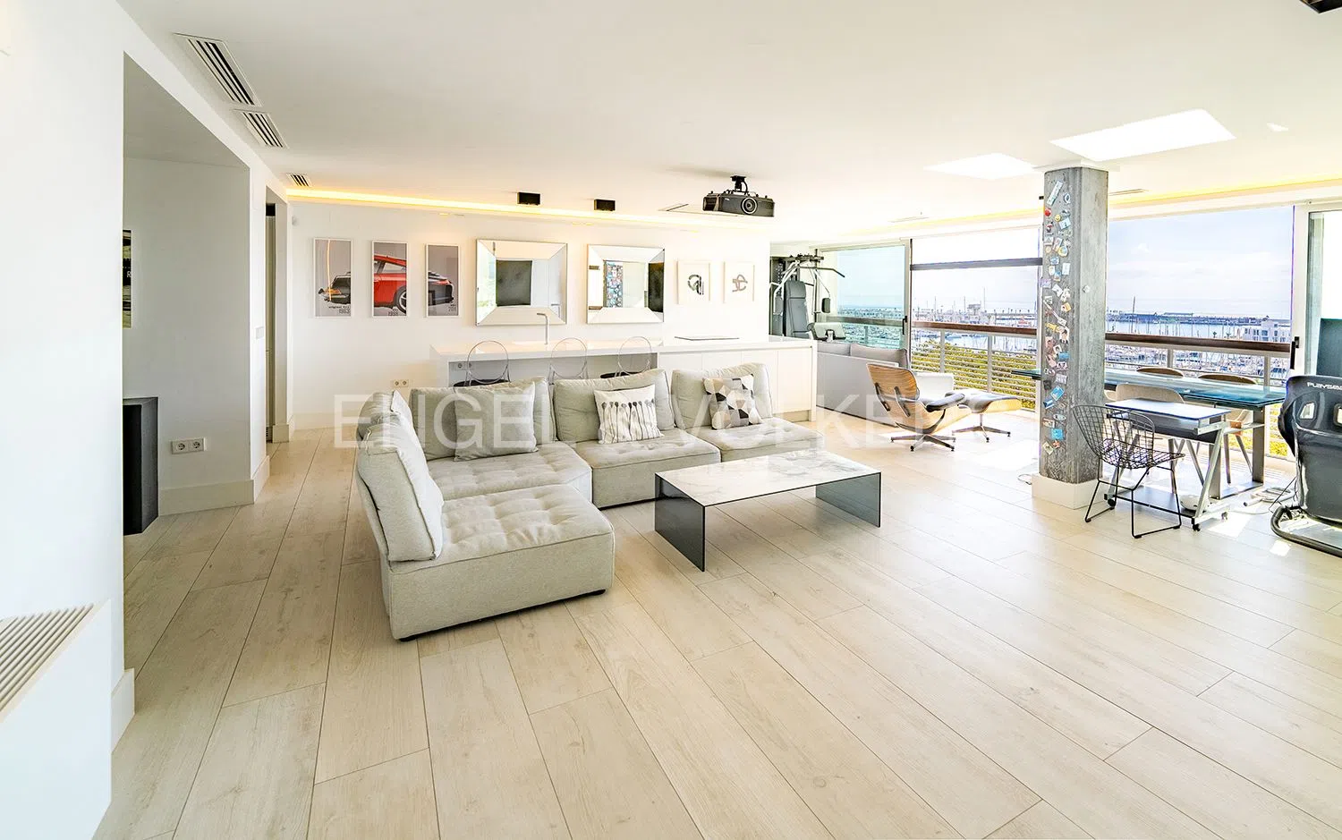 Apasionante sueño moderno frente al mar. Situada en una ubicación privilegiada a orillas del océano, esta maravilla arquitectónica destaca por sus idílicas vistas. Al entrar, los sentidos se despiertan ante la extraordinaria luminosidad y los espacios amplios que ofrece. Un gran salón-comedor se abre a una hermosa cocina moderna, el lugar perfecto para disfrutar de veladas gastronómicas con vistas al mar. Además, cuenta con un proyector y pantalla de cine, ideal para momentos familiares.