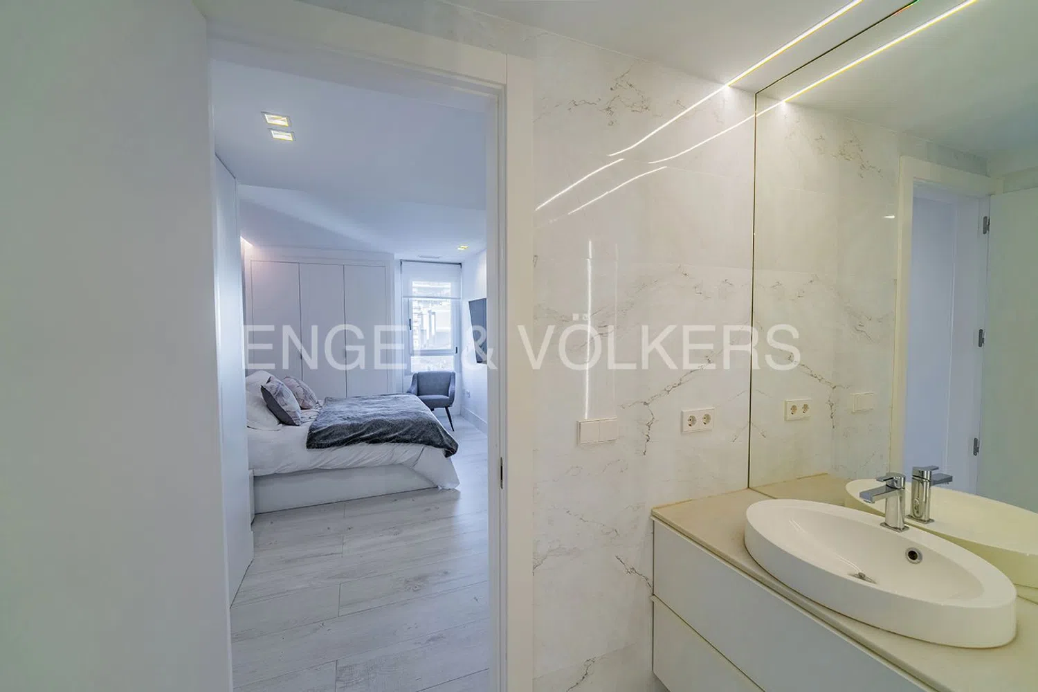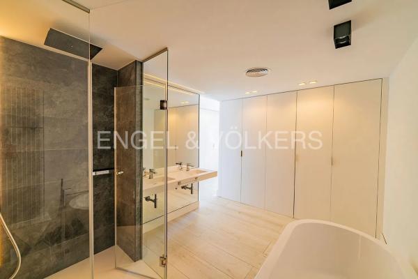 El interior de esta propiedad es un homenaje al minimalismo y al diseño contemporáneo, distribuyéndose en cuatro habitaciones, cada una con modernos baños en suite. En el dormitorio principal, la amplitud de armarios y el baño que incluye una elegante bañera invitan a disfrutar de un relajante momento de bienestar. Para satisfacer las más altas exigencias, cuenta con suelos de parquet y aire acondicionado frío/calor a través de conductos, además de radiadores de calor y una plaza de garaje accesible desde el ascensor del edificio.