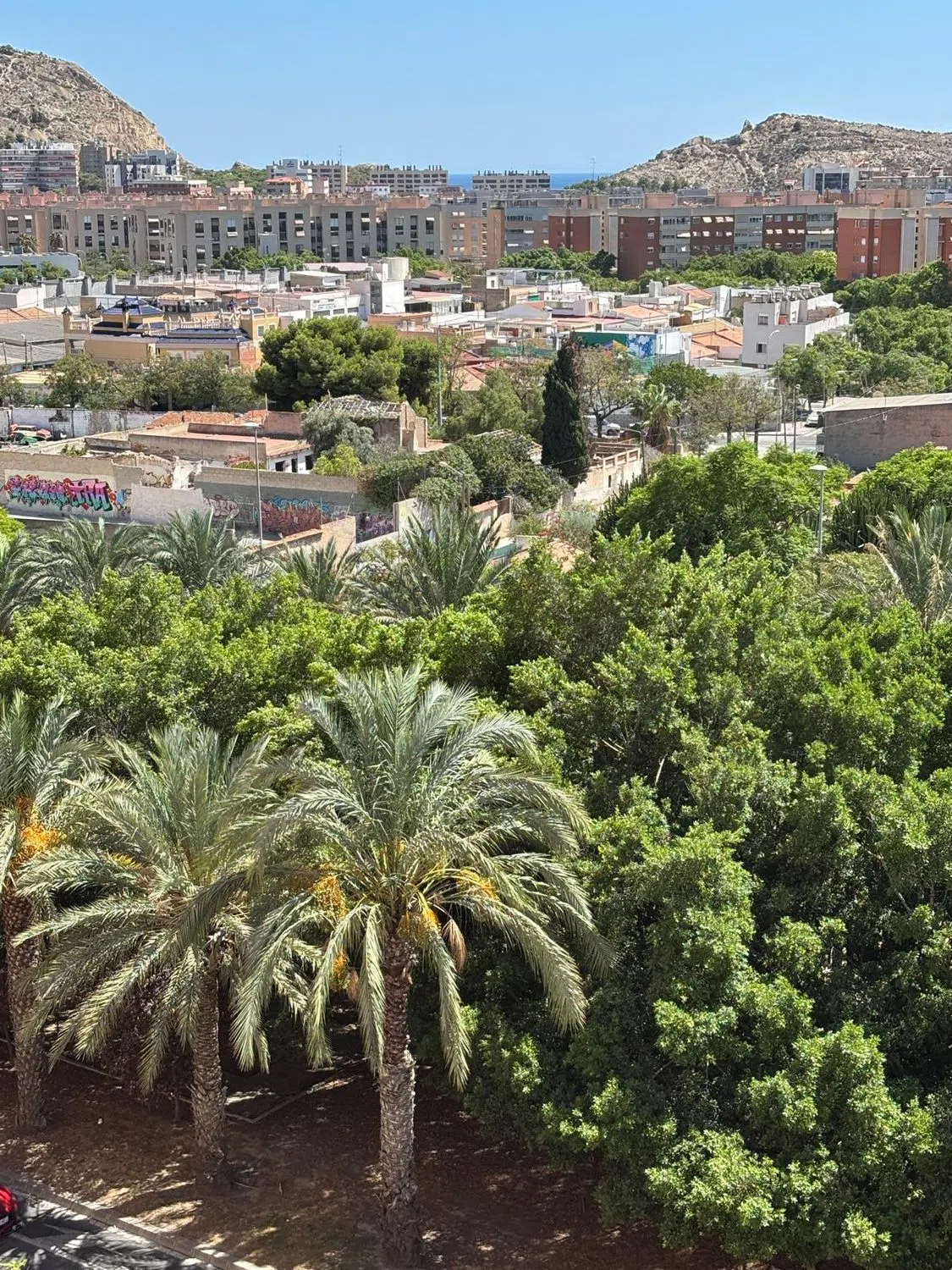 Vivienda muy cuidada y utilizada temporalmente. Totalmente exterior. Muy buena orientación. Con vistas amplias al parque y al mar. Luminosa. Tres dormitorios. Dos baños completos (uno de ellos con plato de ducha). Aire acondicionado en toda la casa. Calefacción individual por gas natural. Incluye una plaza de garaje. Cuota de comunidad muy baja, 38 €/mes. Edificio totalmente accesible, construido en 2005. Muy cerca del Centro Comercial Gran Vía y del Hospital General Universitario de Alicante. Abstenerse agencias inmobiliarias.